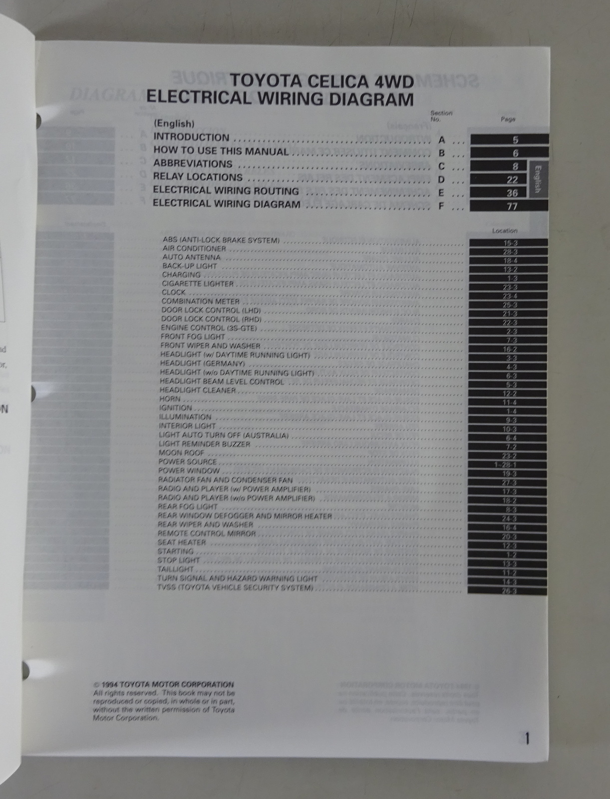 Workshop Manual Toyota Celica 4WD electrical wiring diagram Supplement 02/1994