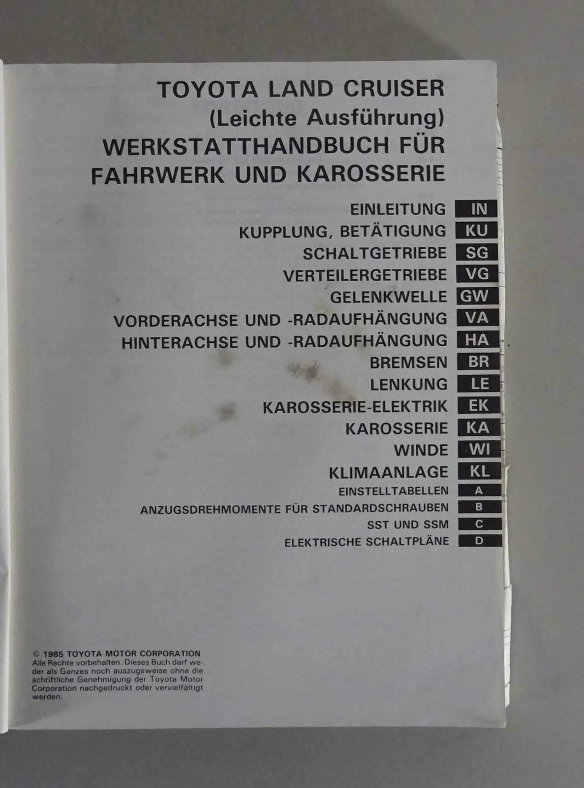 Werkstatthandbuch Toyota Land Cruiser leichte Ausführung RJ / LJ 70 Stand 1984
