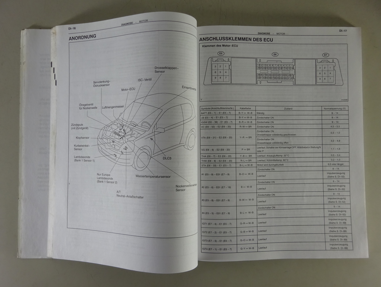 Werkstatthandbuch Toyota Motor 1SZ - FE für Toyota Yaris / Echo SCP10 von 1/2001