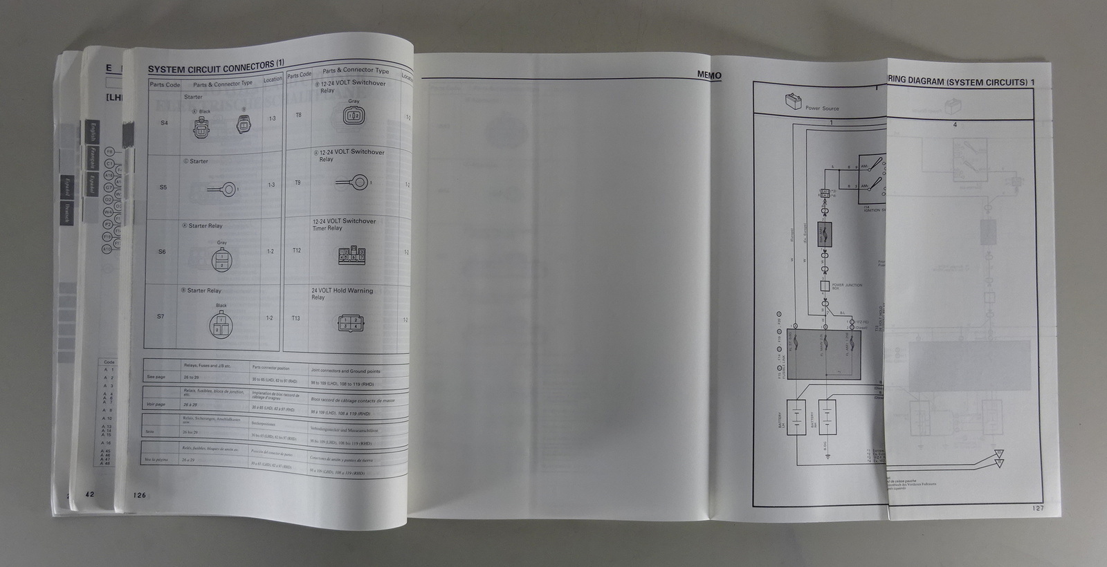 Inhalt: Einführung, Anwendungshinweise, Fehlersuche, Relais-Positionen, Verkabelung, System-Schaltkreise, Massepunkte, Steckerliste, Schaltpläne etc.
