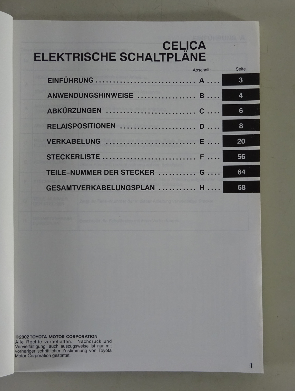 Produktinformationen "Werkstatthandbuch Toyota Celica ZZT23 Elektrische Schaltpläne Stand 08/2002"