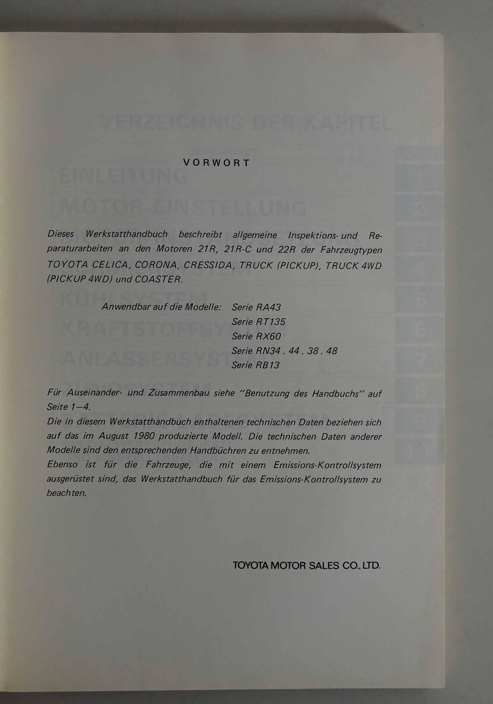 Werkstatthandbuch Motor original Toyota Toyota Motor 21R / 22R / 21R-C... mehr