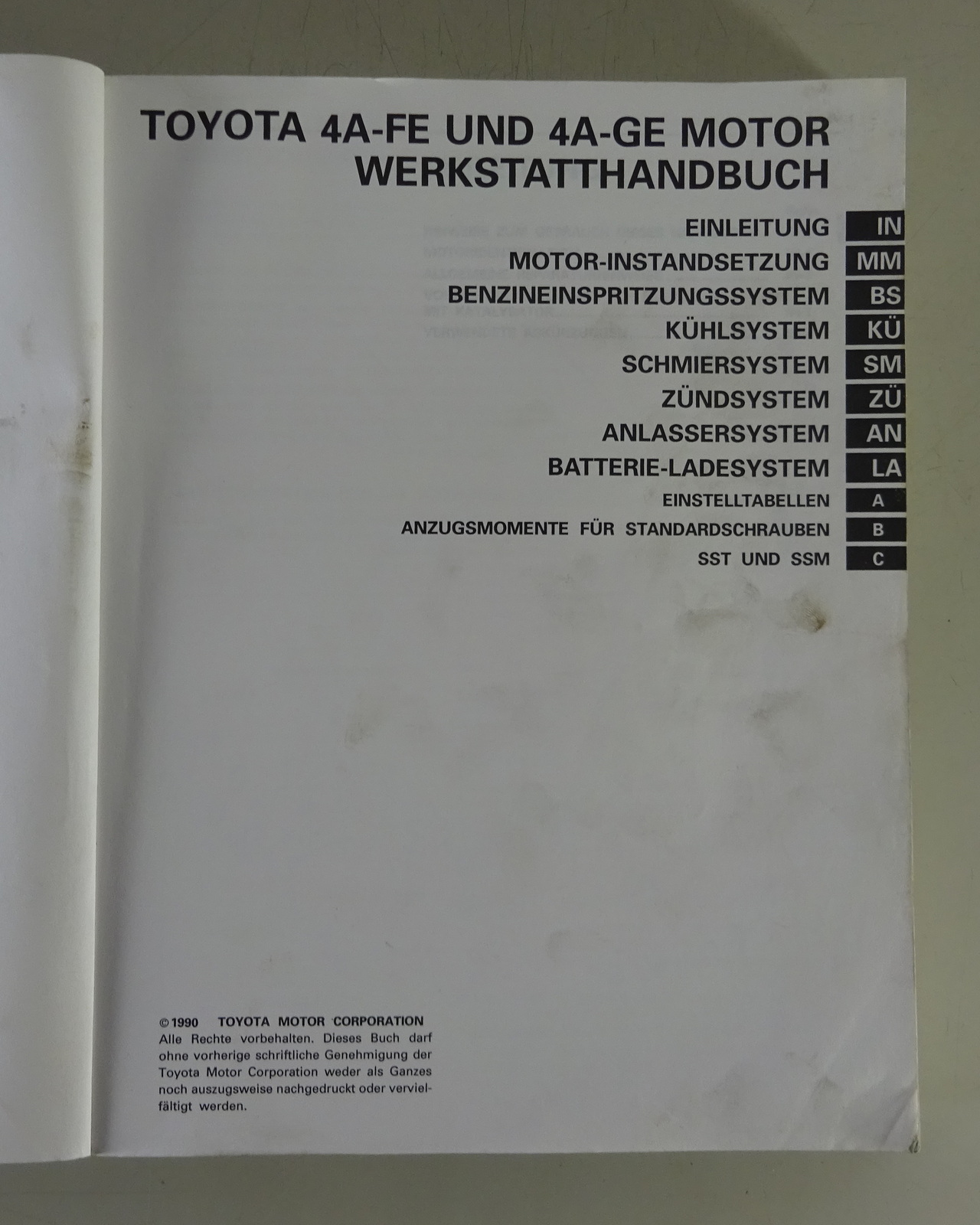 Werkstatthandbuch Toyota Corolla / Celica T18 Motor 4A-FE, 4A-GE Stand 09/1989