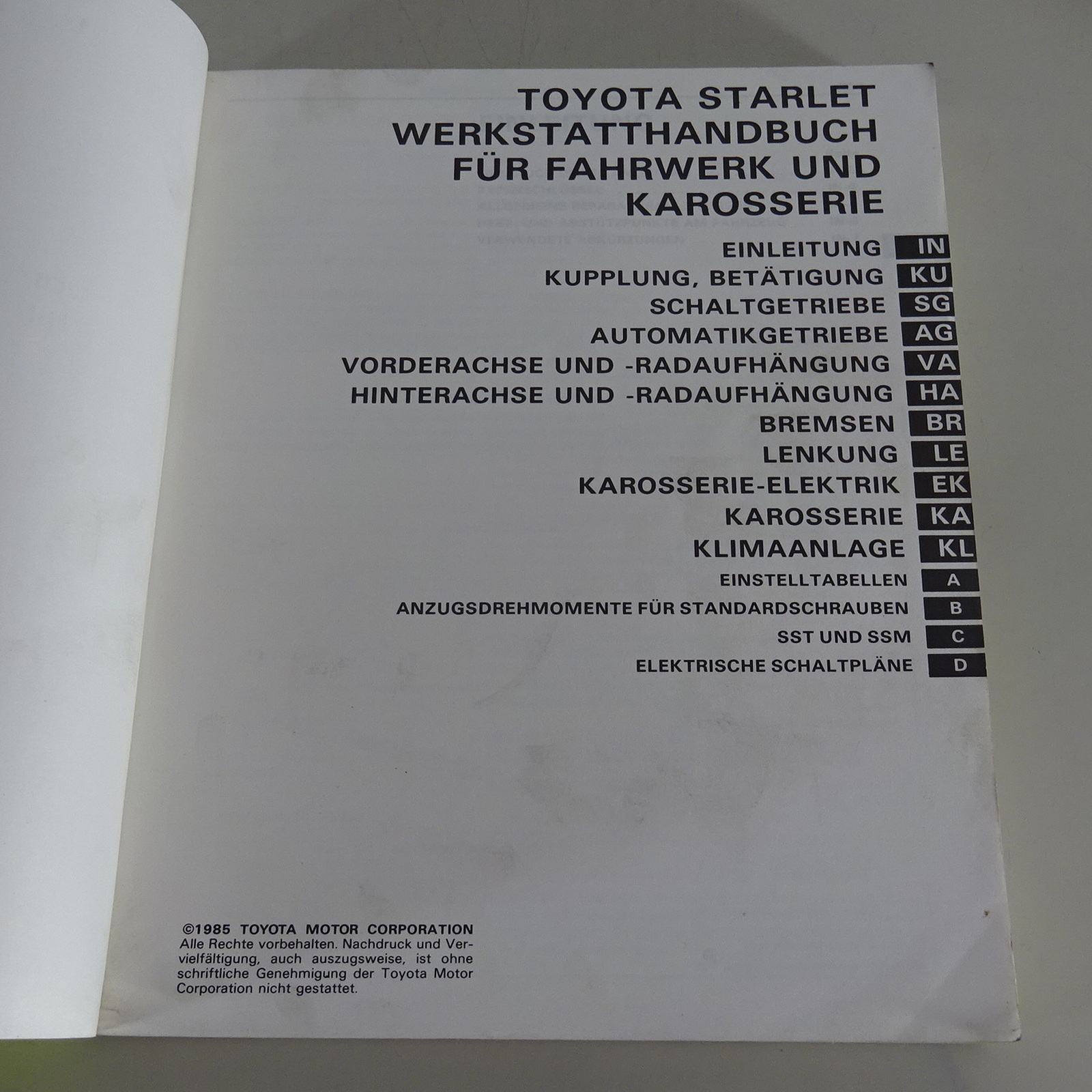 Werkstatthandbuch Toyota Starlet EP70, 71 Fahrwerk & Karosserie Stand 10/1984