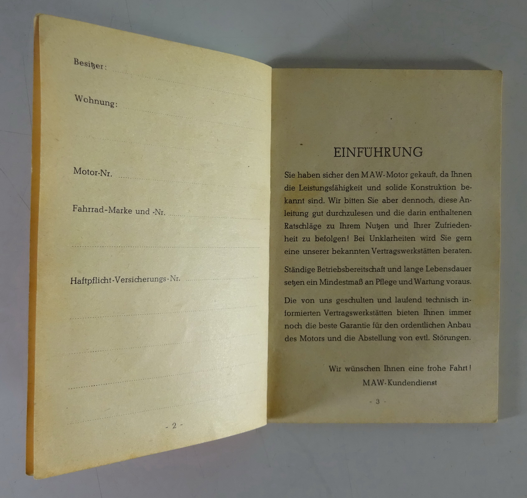 Betriebsanleitung / Anbauanleitung MAW Anbaumotor 50ccm 1,3PS Stand 02/1959