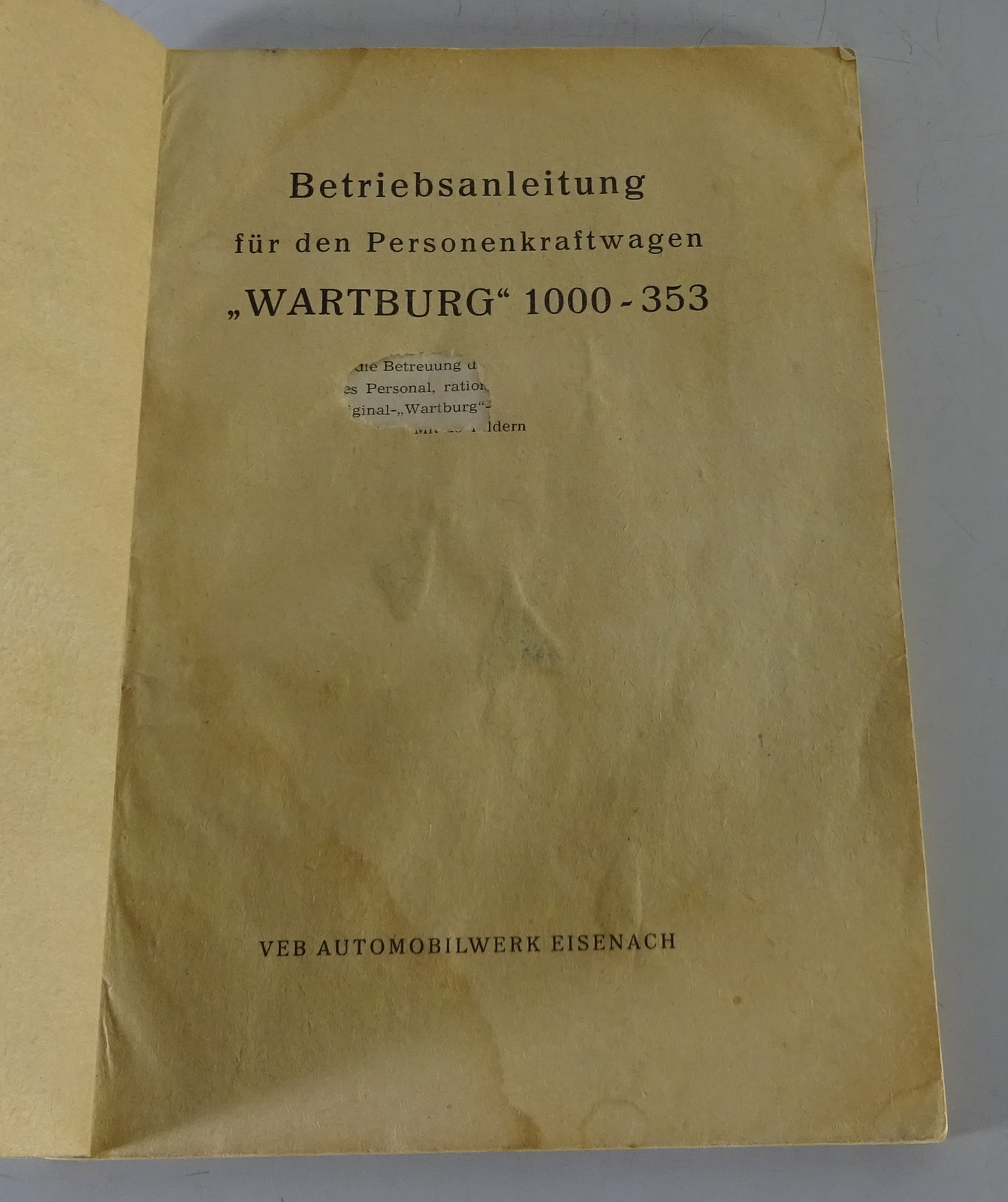 Betriebsanleitung / Handbuch original VEB Automobilwerk Eisenach