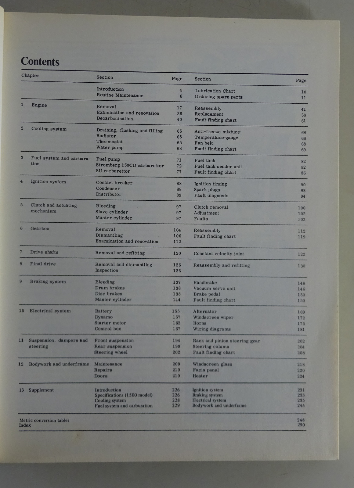 Inhalt: Engine, Ignition System, Transmission, Driveshafts, Braking System, Steering, Electrical System, Suspension and wheels, Bodywork and Fittings, u.v.m.