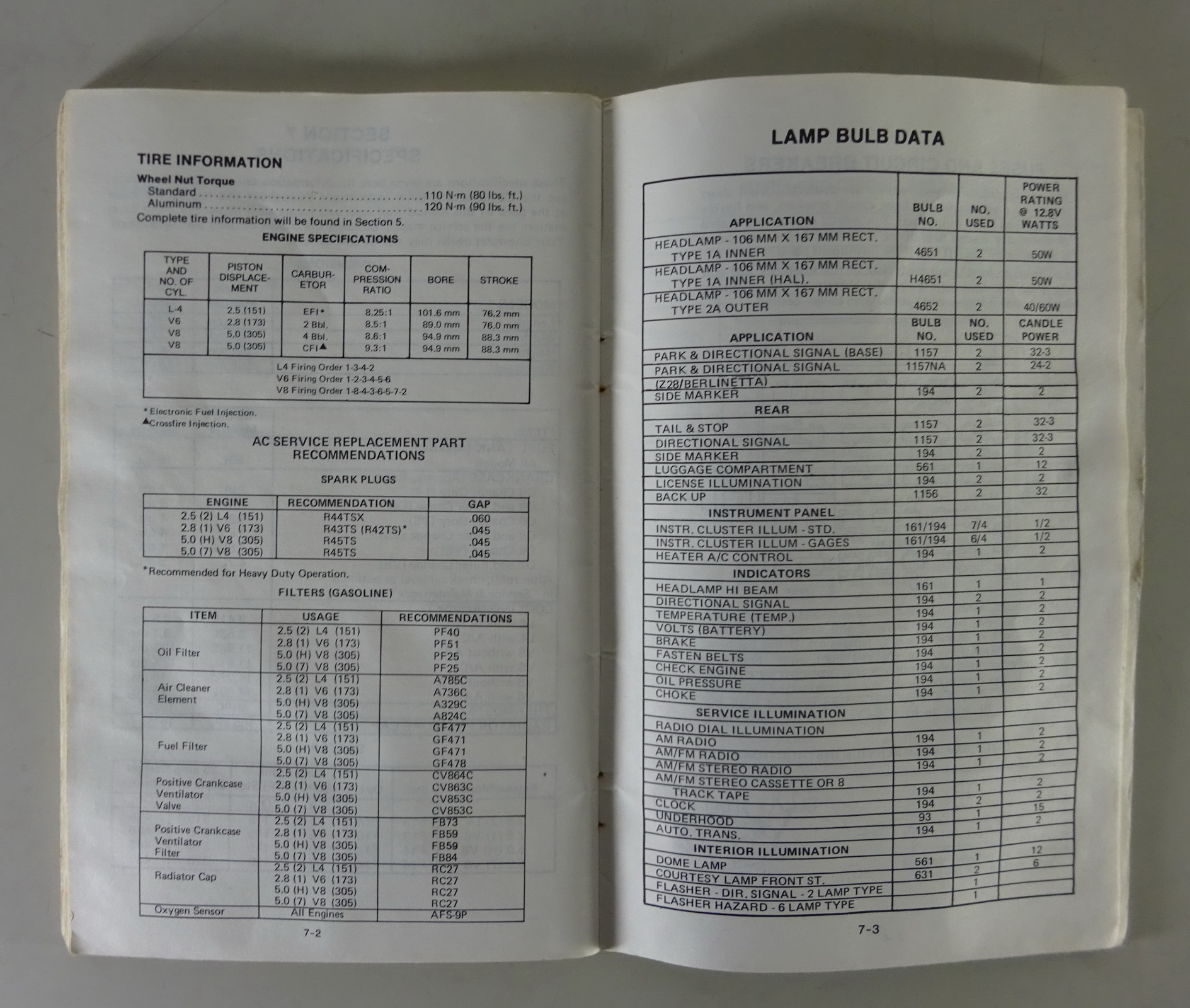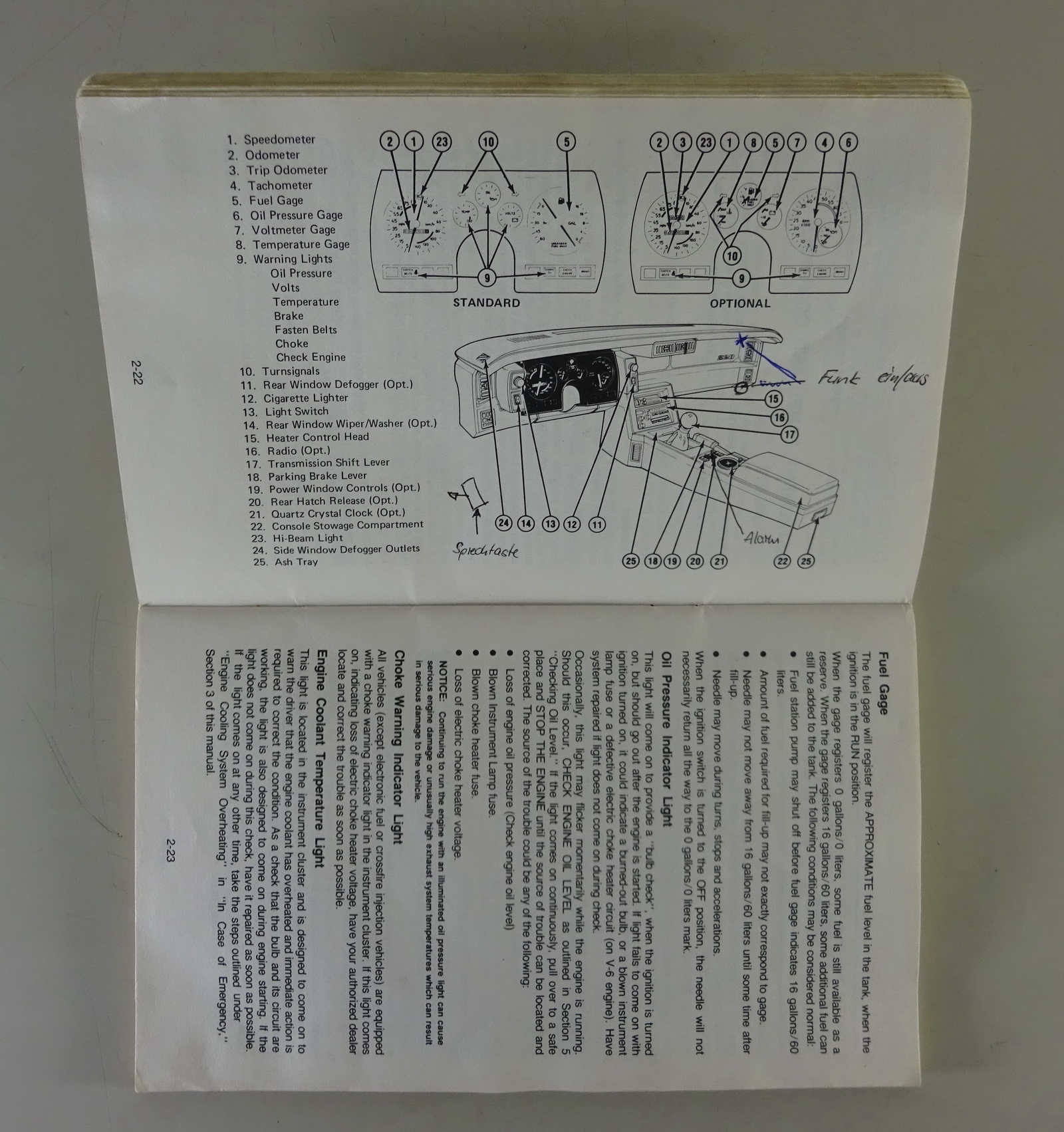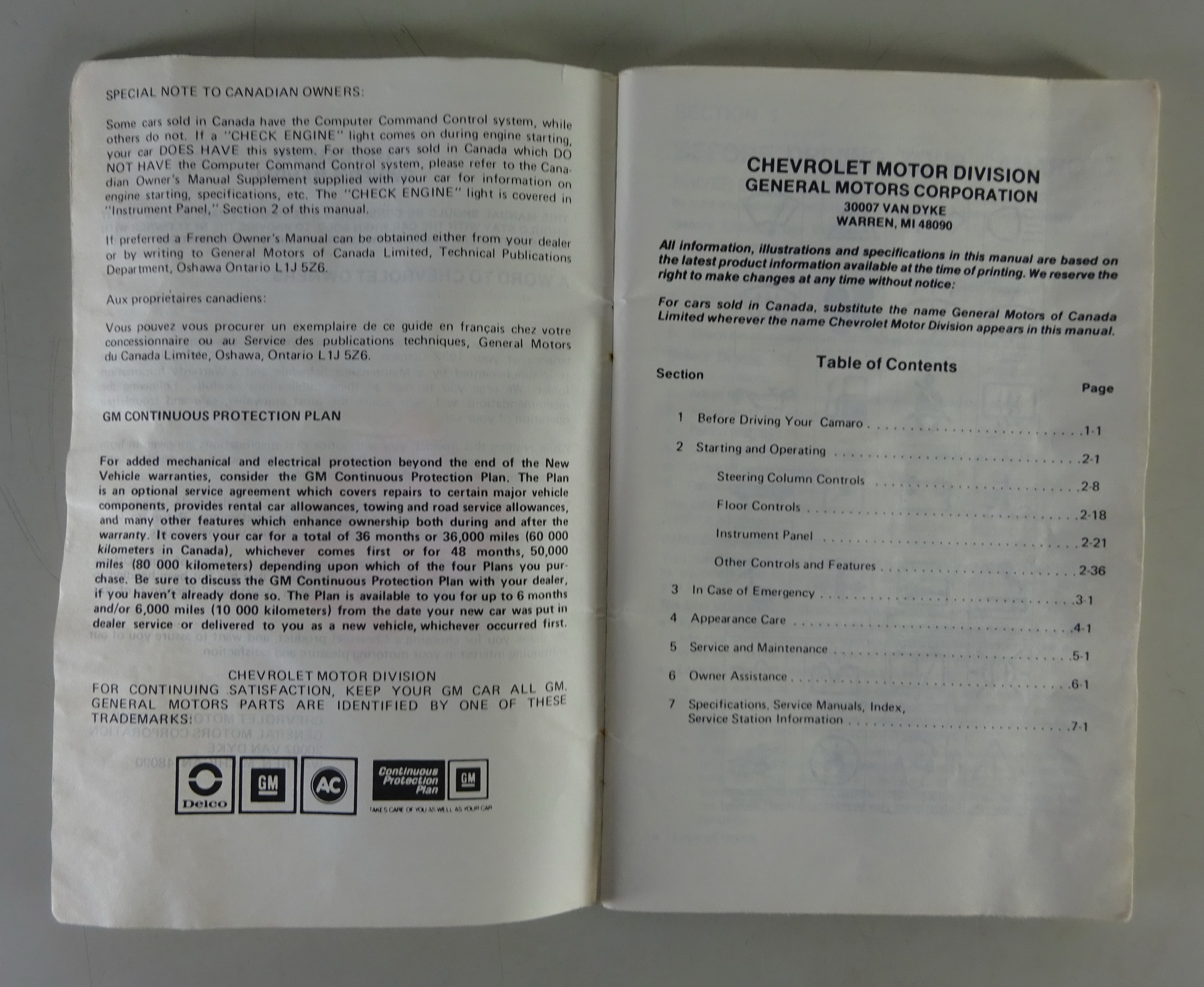 Owner´s Manual / Handbook / Handbuch Chevrolet Camaro Baujahr 1982 - 1985