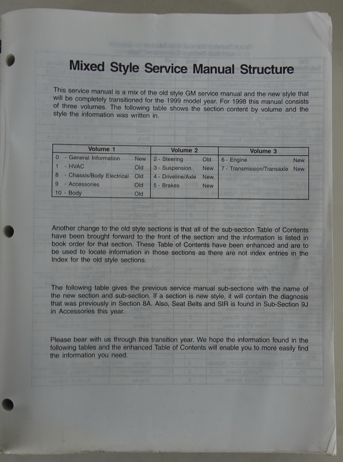 • mix of the old style GM Service Manual and the new style that will be completely transitioned for the 1999 model year