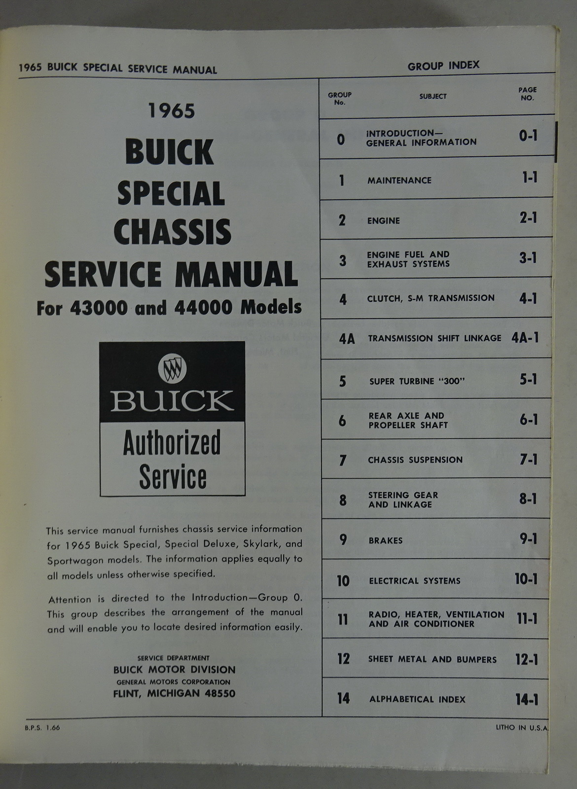 Workshop Manual Chassis Buick Special, Sportwagon, Skylark Stand 01/1966