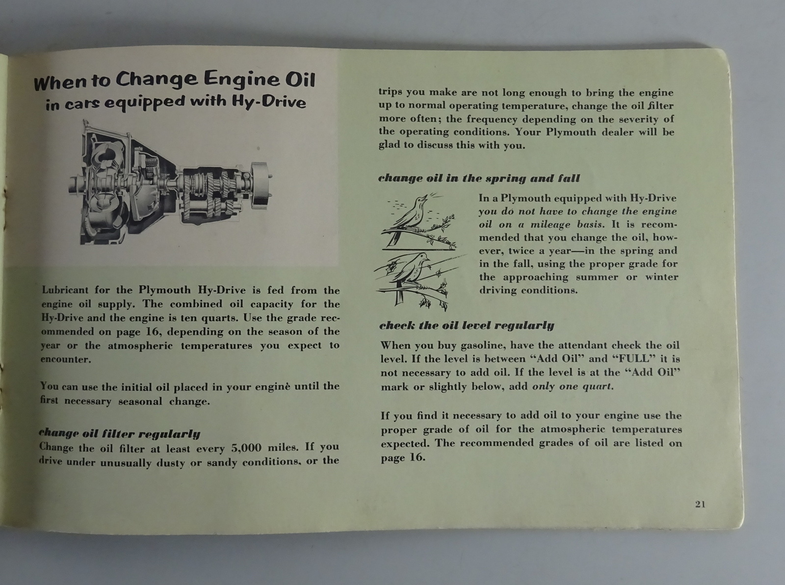 Betriebsanleitung/Handbuch Plymouth Plaza, Savoy + Belvedere von 1953