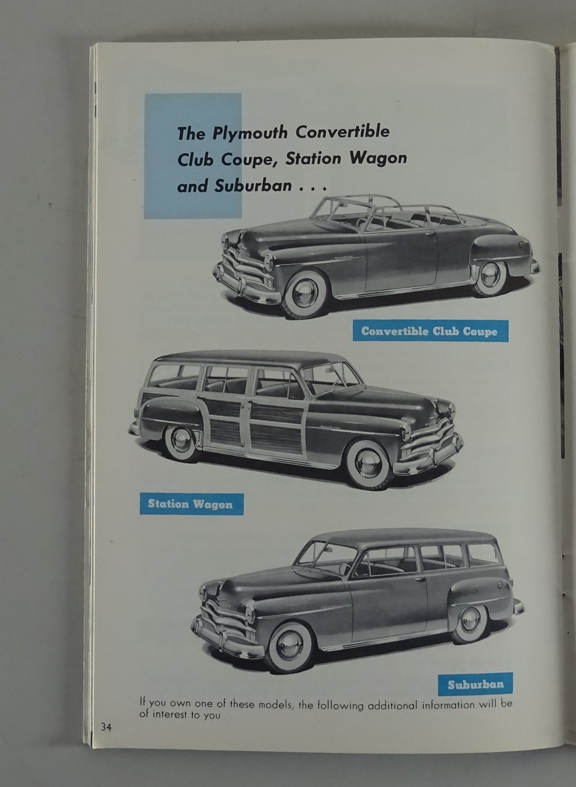 Betriebsanleitung Plymouth Deluxe Convertible Club Coupe, Station Wagon,Suburban