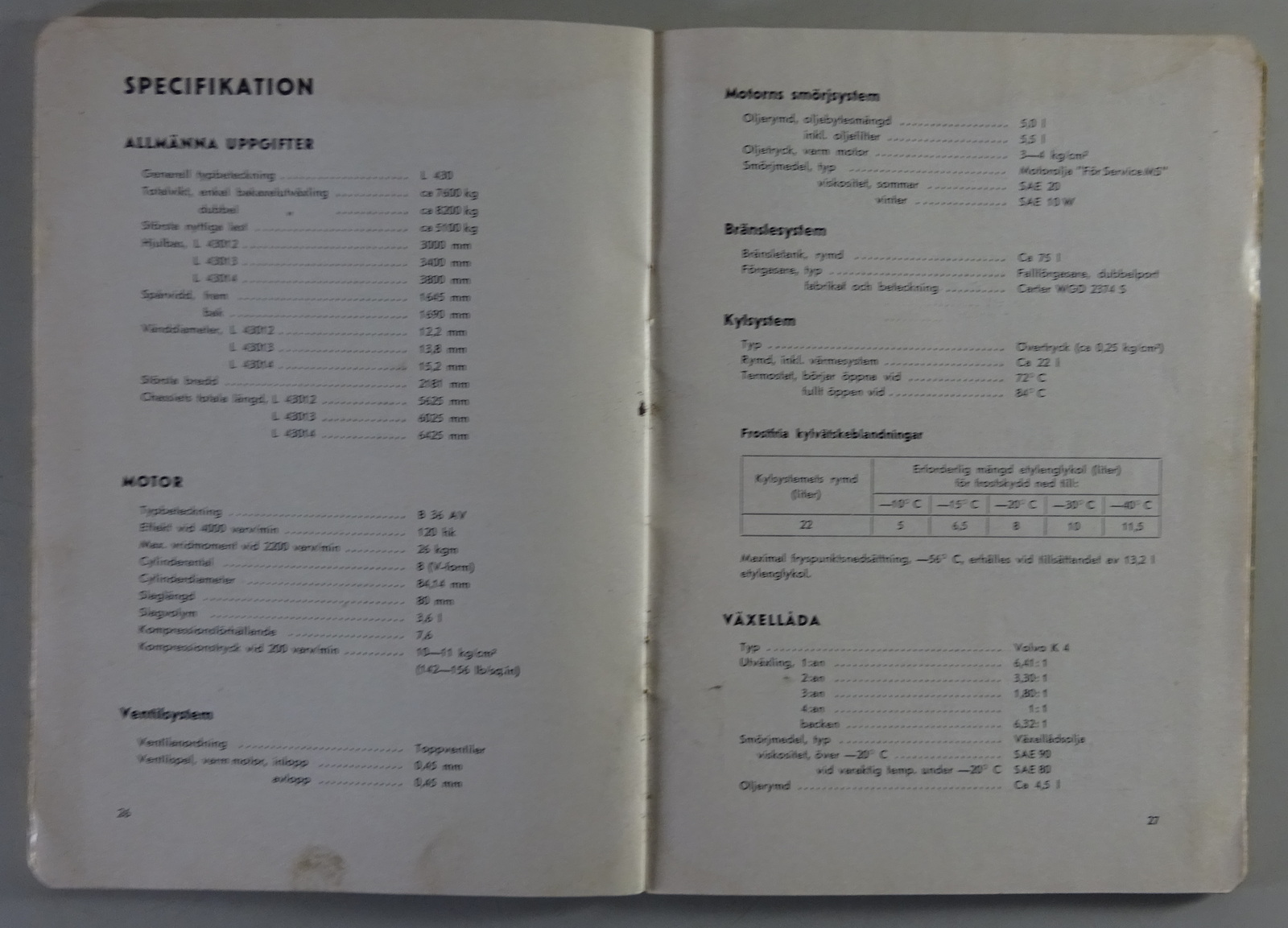 Betriebsanleitung / Instruktionsbok Volvo LKW L430 Trygge Stand 11/59 Schwedisch