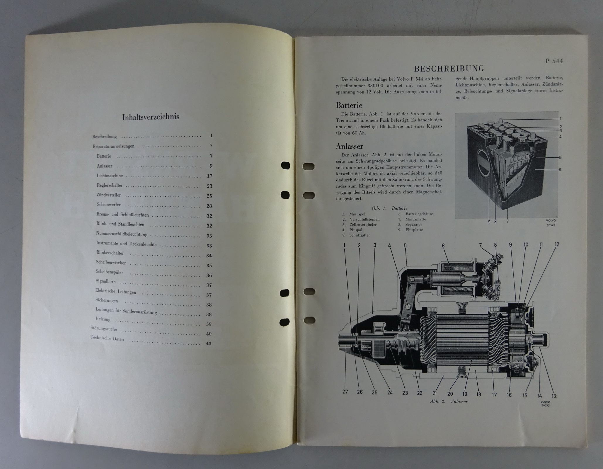 Werkstatthandbuch / Reparaturanleitung Elektrische Anlage 12 V Volvo P 544 1963