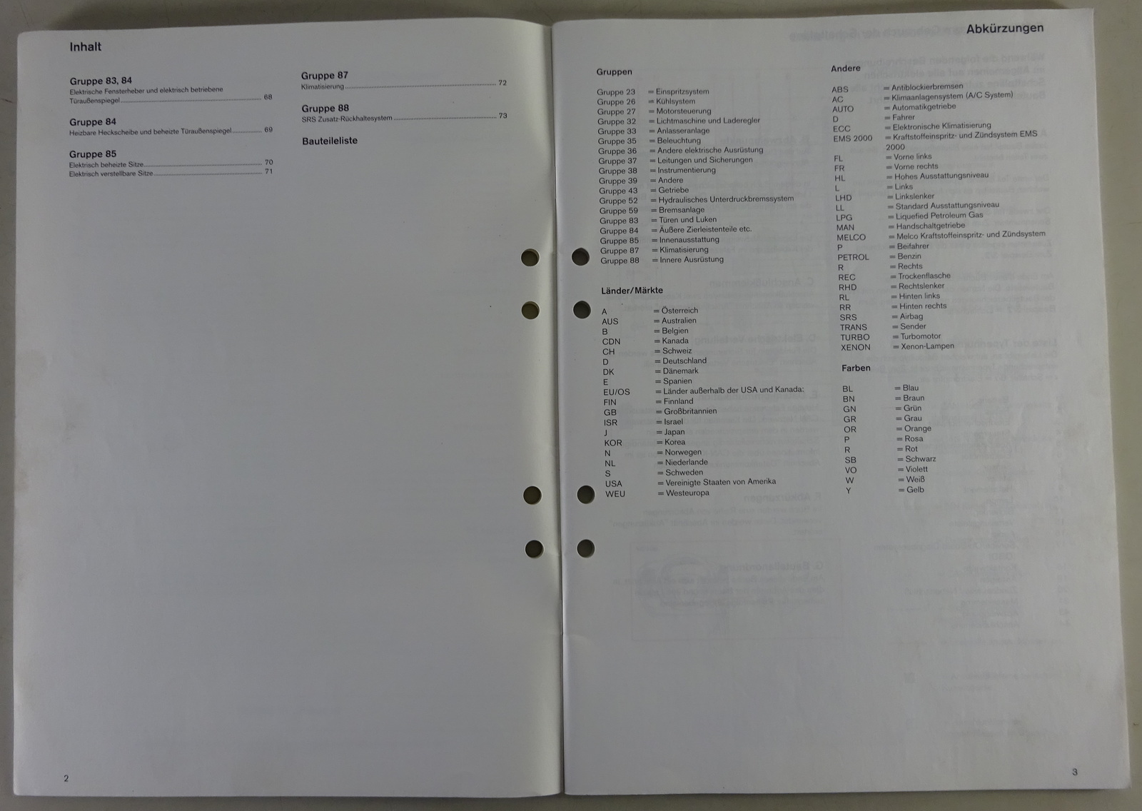 Inhalt: Elektrische Schaltpläne, Kabelbäume, Lagepläne, Steckverbindungen, Relais, Sicherungen