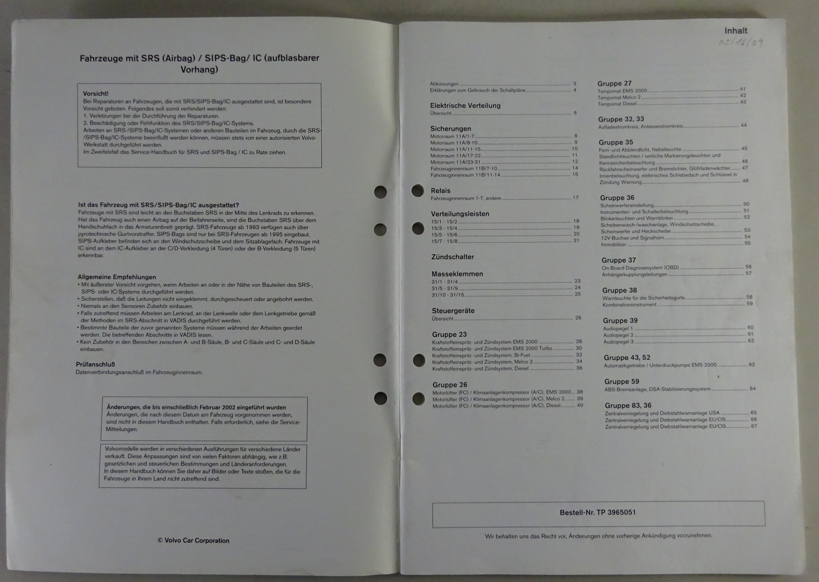 Produktinformationen "Werkstatthandbuch / Elektrische Schaltpläne Volvo S40 / V40 Bj. 2003 Stand 03/02"