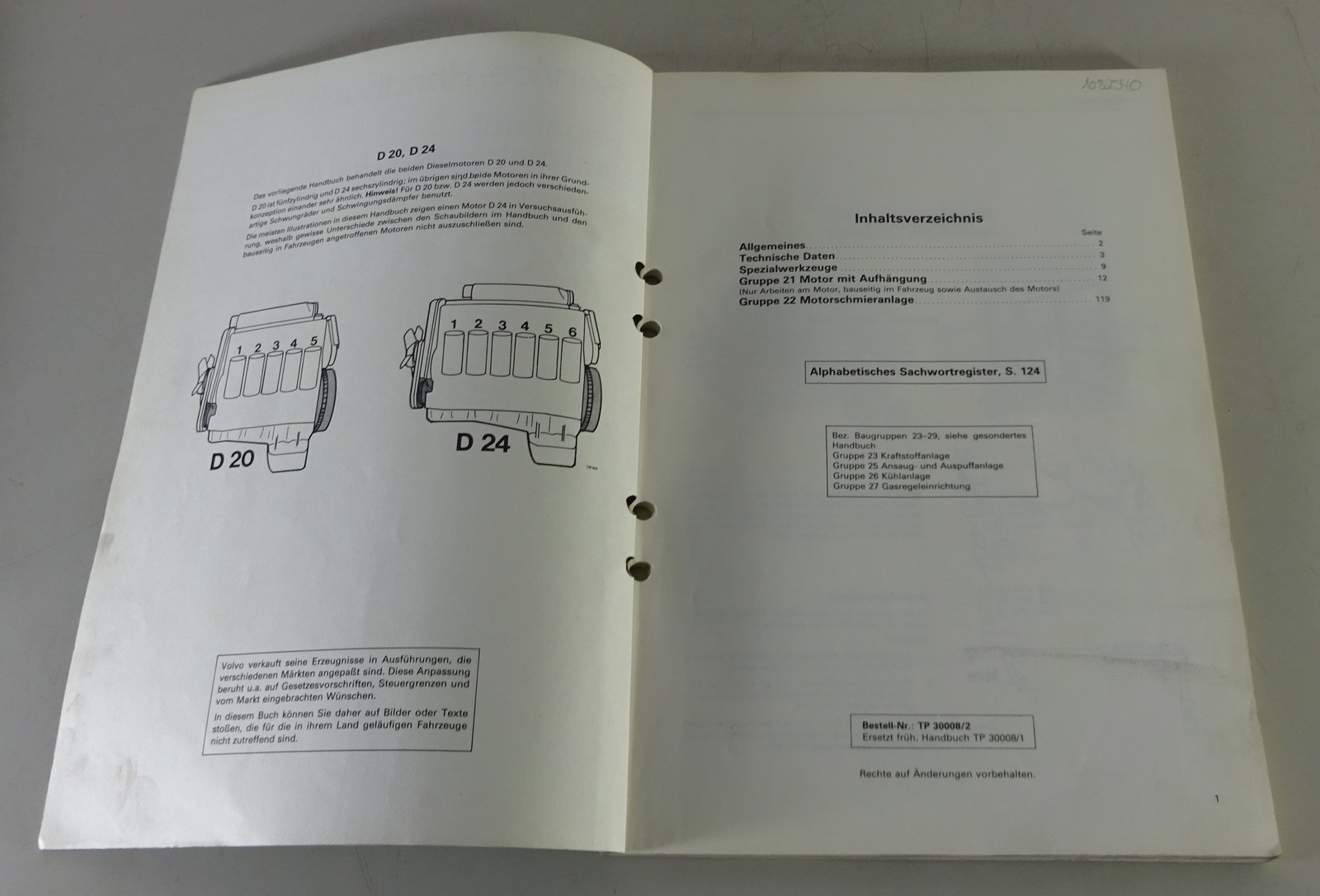 Produktinformationen "Werkstatthandbuch Volvo 240 Motoren Dieselmotor D20 / D24 ab 1979 Stand 11/1982"