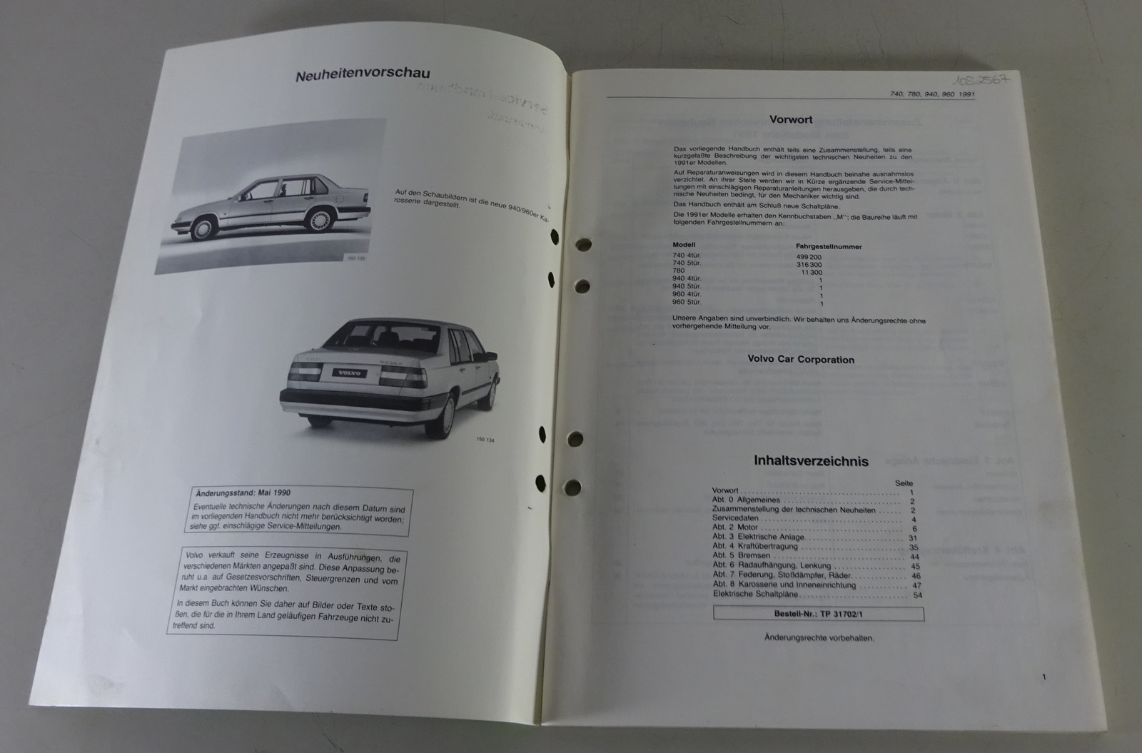 Werkstatthandbuch Volvo 740 / 780 / 940 / 960 Neuheitenvorschau 1991