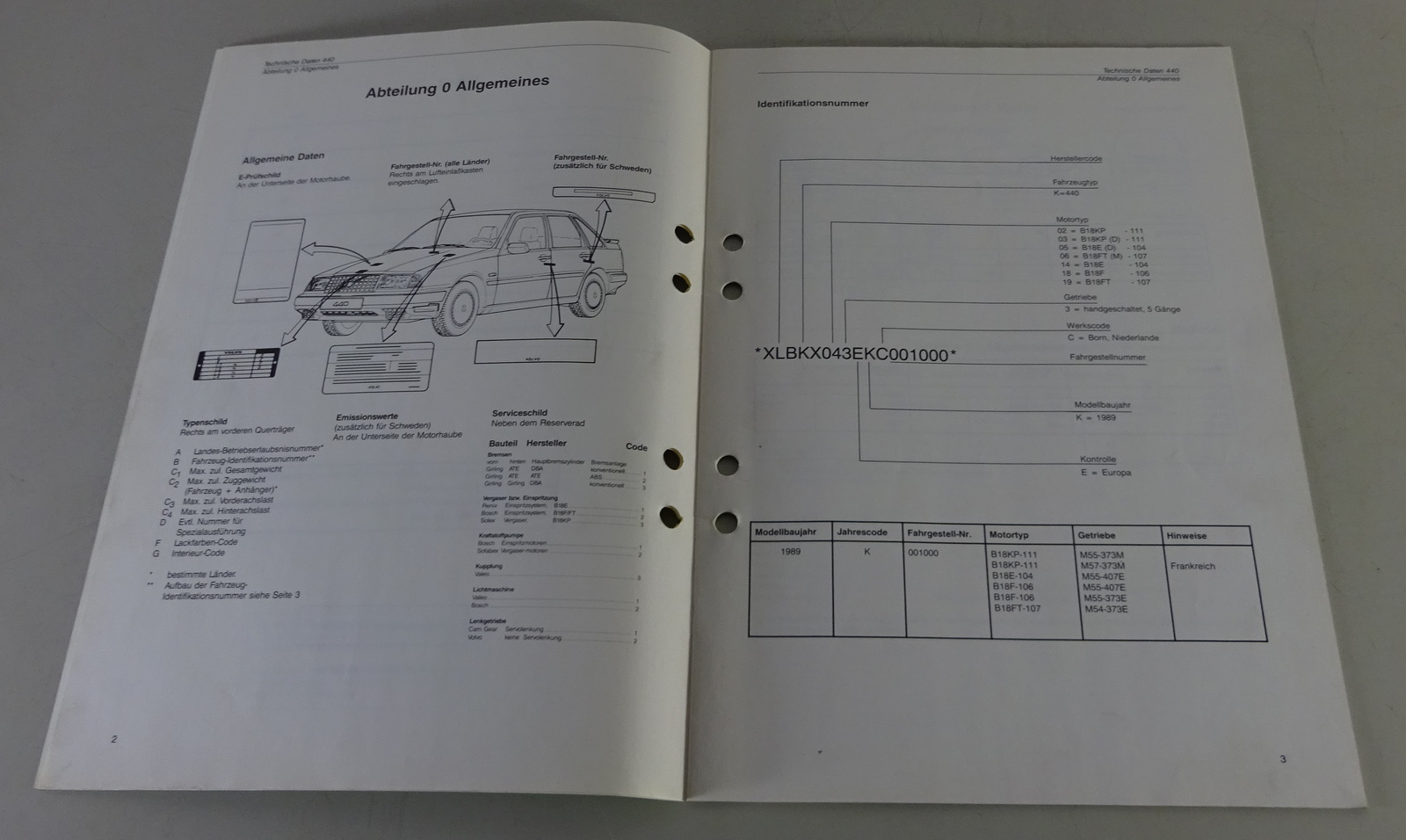 Werkstatthandbuch Volvo 440 Technische Daten ab Baujahr 1988 Stand 07/1988