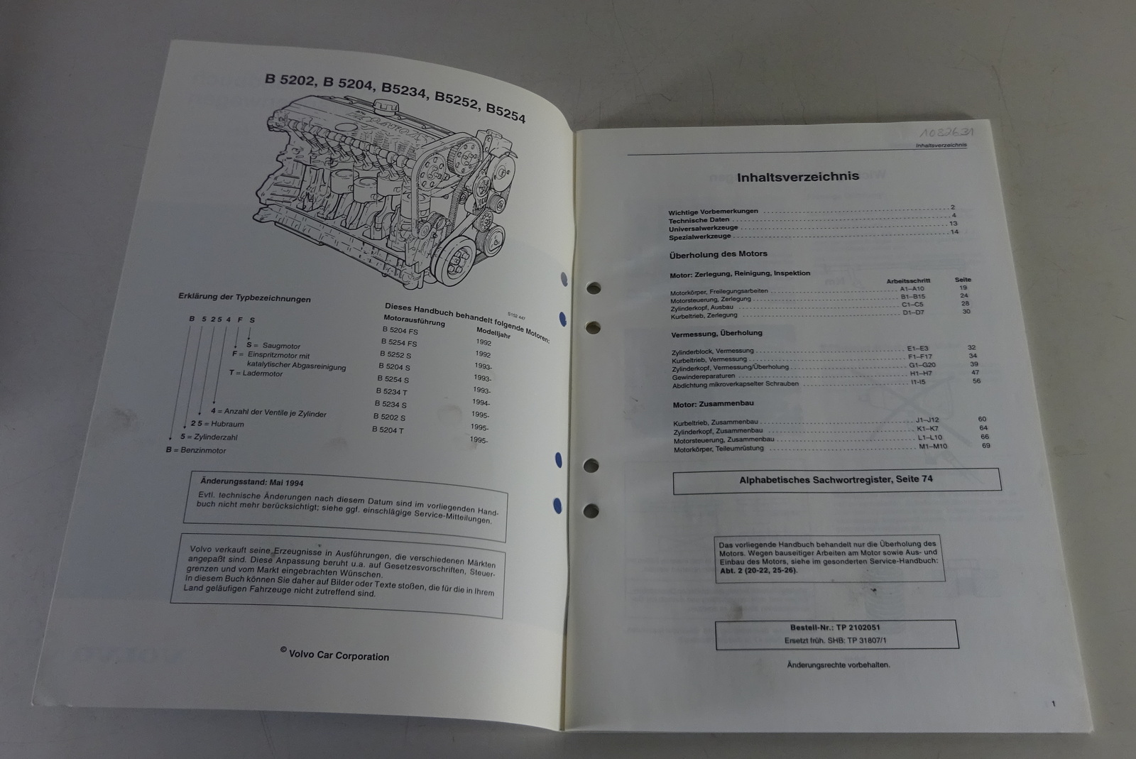 Werkstatthandbuch Volvo 850 Motor B 5202 / B 5204 / B 5234 / B 5252 / B 5254