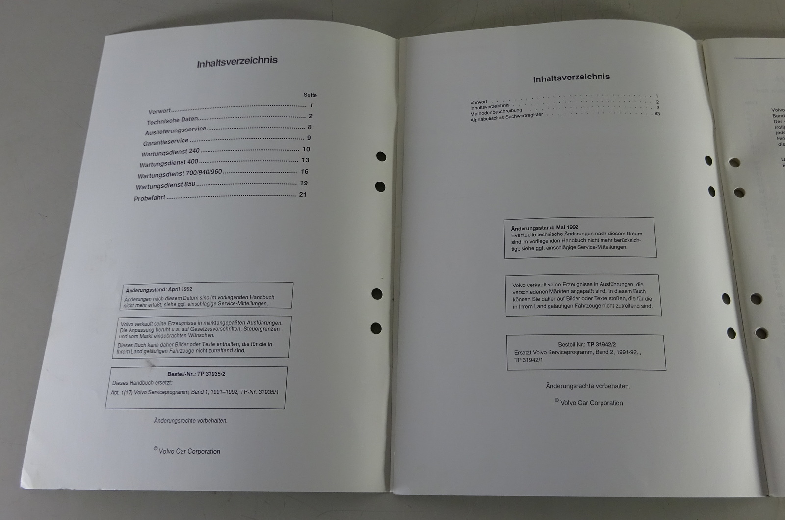 Werkstatthandbuch Volvo Serviceprogramm 240 / 400 / 700 / 940 / 960 / 850 - 1991