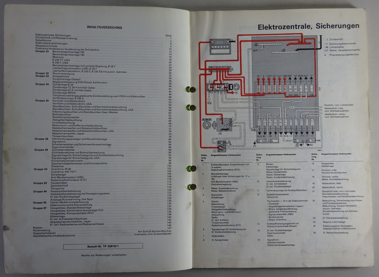 Inhalt: Elektrische Schaltpläne, Kabelbäume, Lagepläne, Steckverbindungen, Relais, Sicherungen