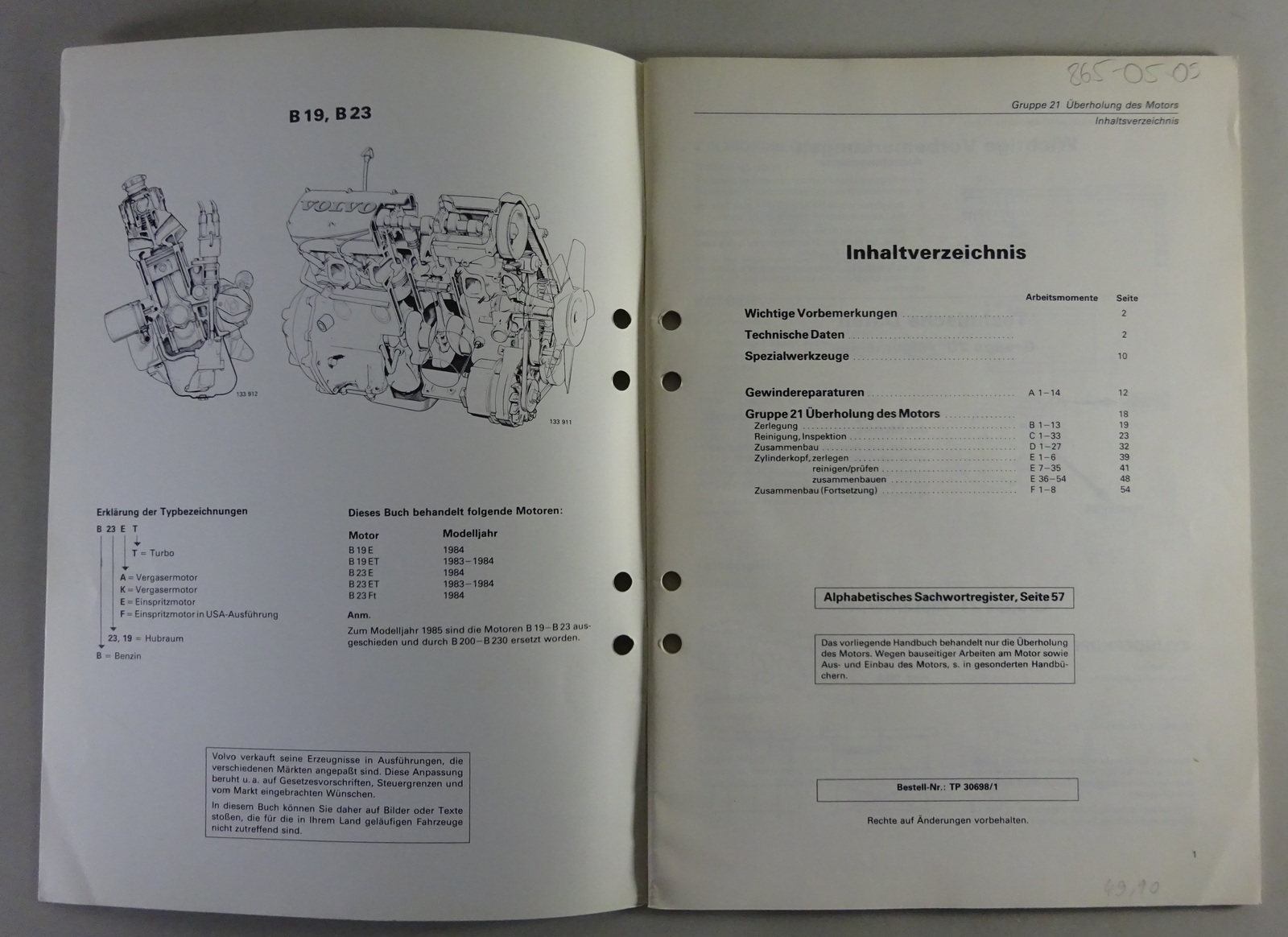 Inhalt: Technische daten, Spezialwerkzeug, Gewindereparaturen, Überholung des Motors