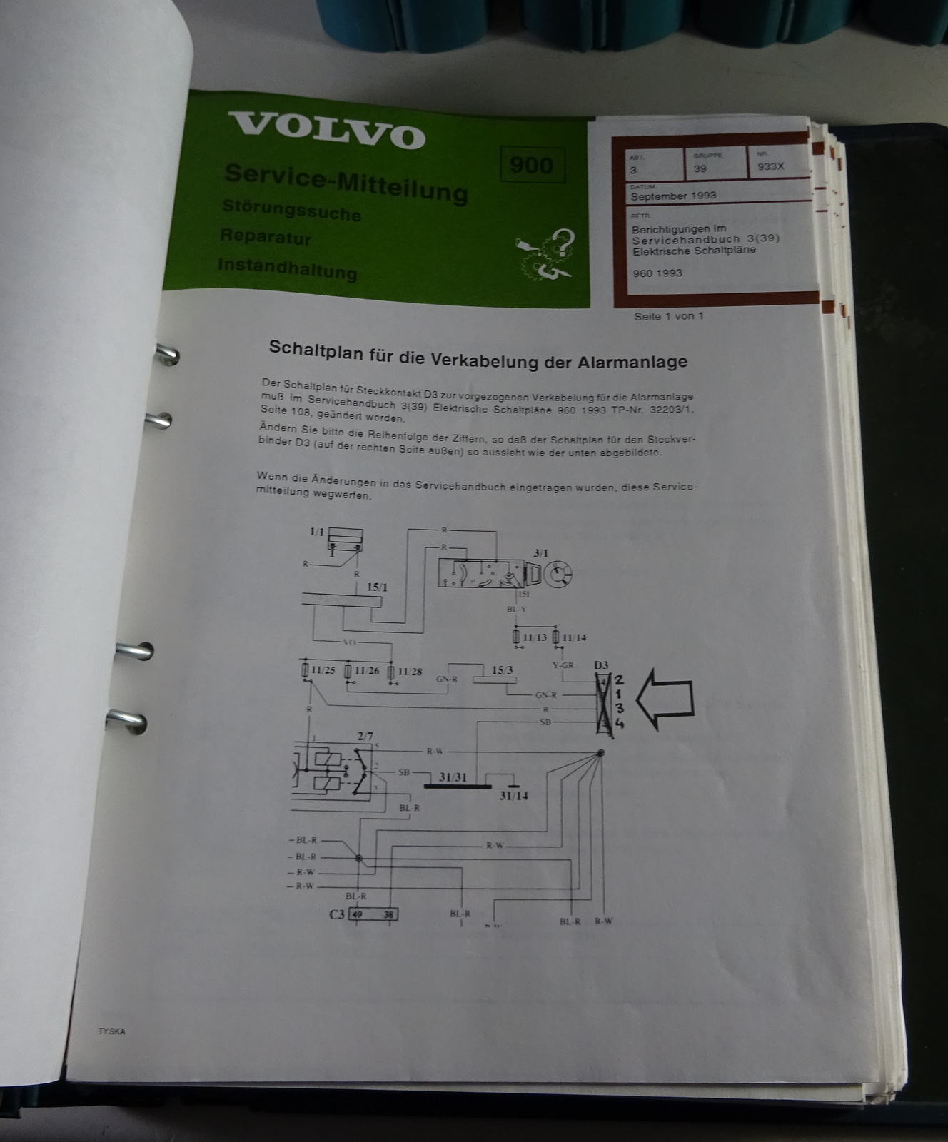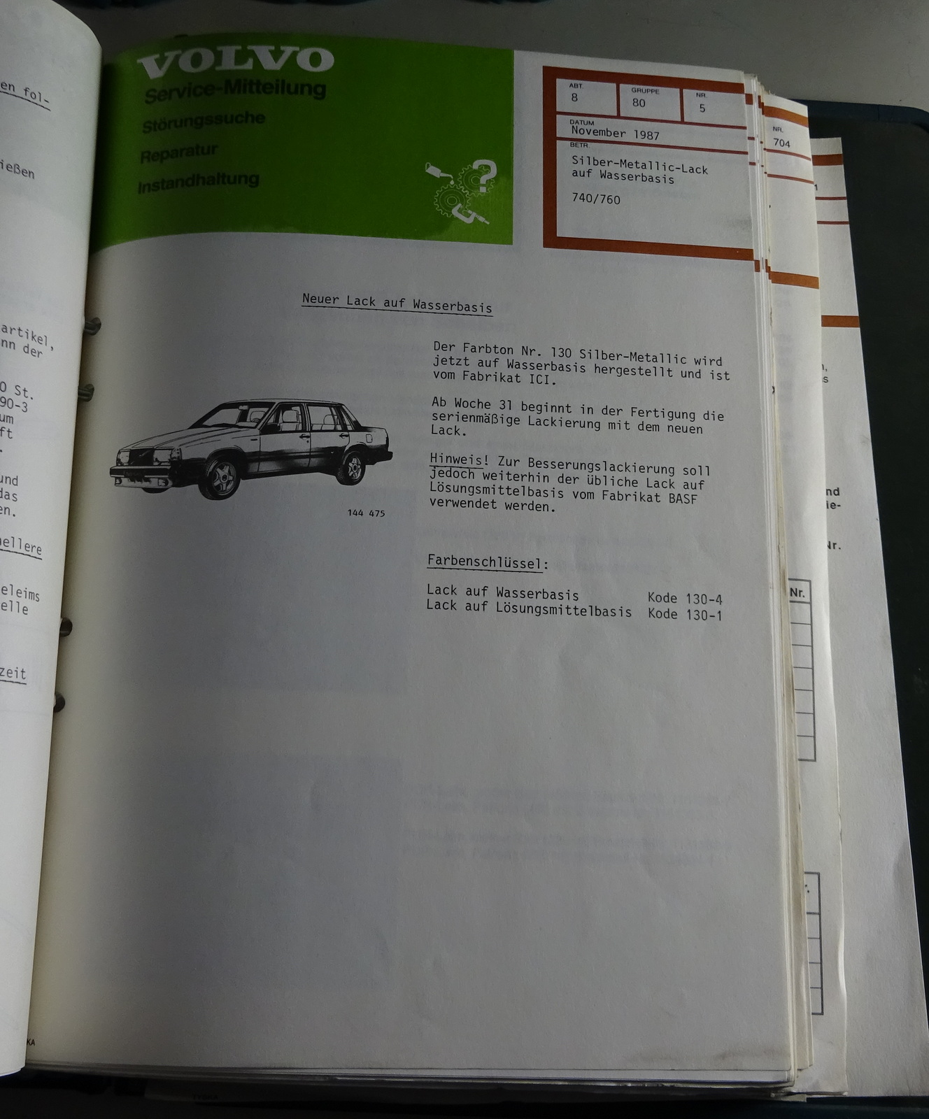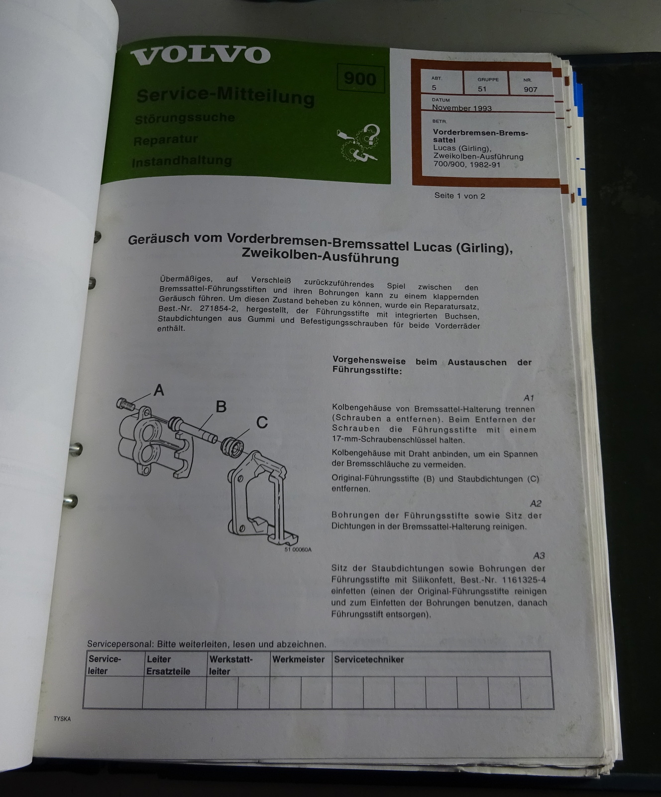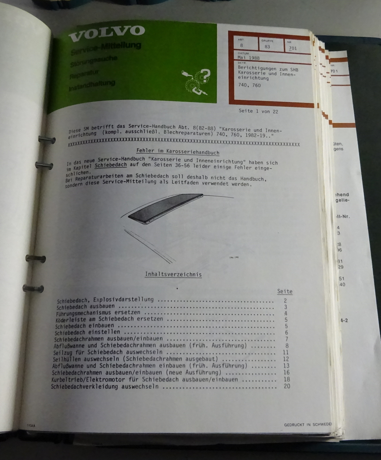 Produktinformationen "Service Mitteilungen / Kundendienst Rundschreiben Volvo 700 - 900 ab 1988-1994"