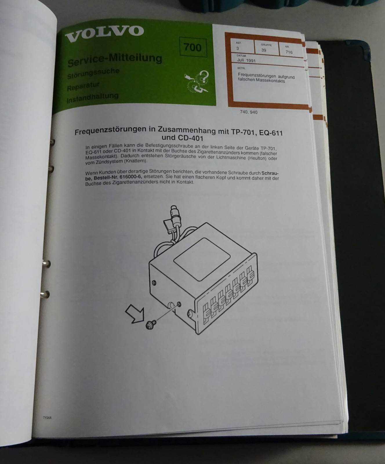 Service-Bulletins Volvo 700 - 900 - Serie
