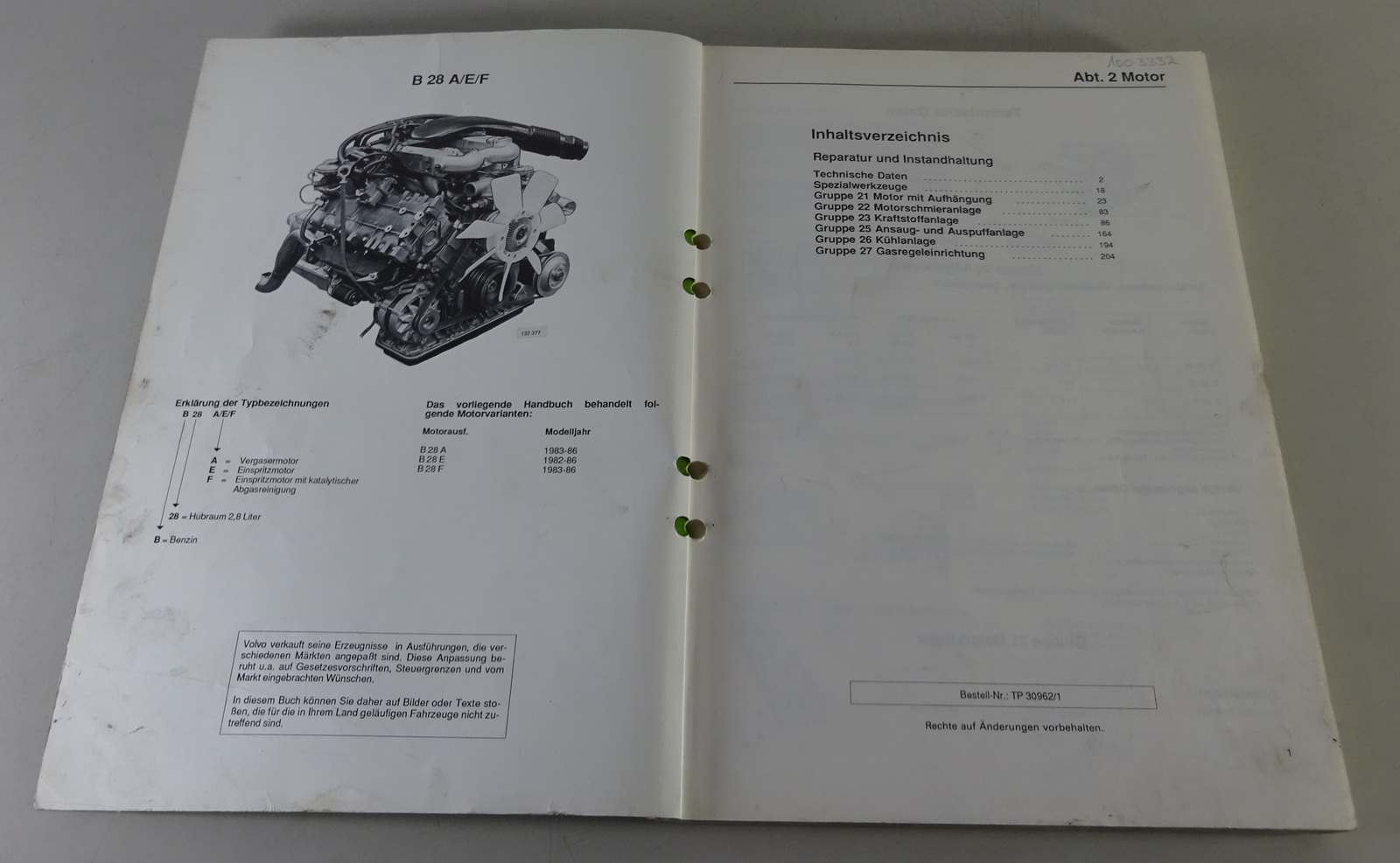 Werkstatthandbuch Volvo 760 GLE 6 Zyl. Motor B28 A / E / F ab Baujahr 1982-1986