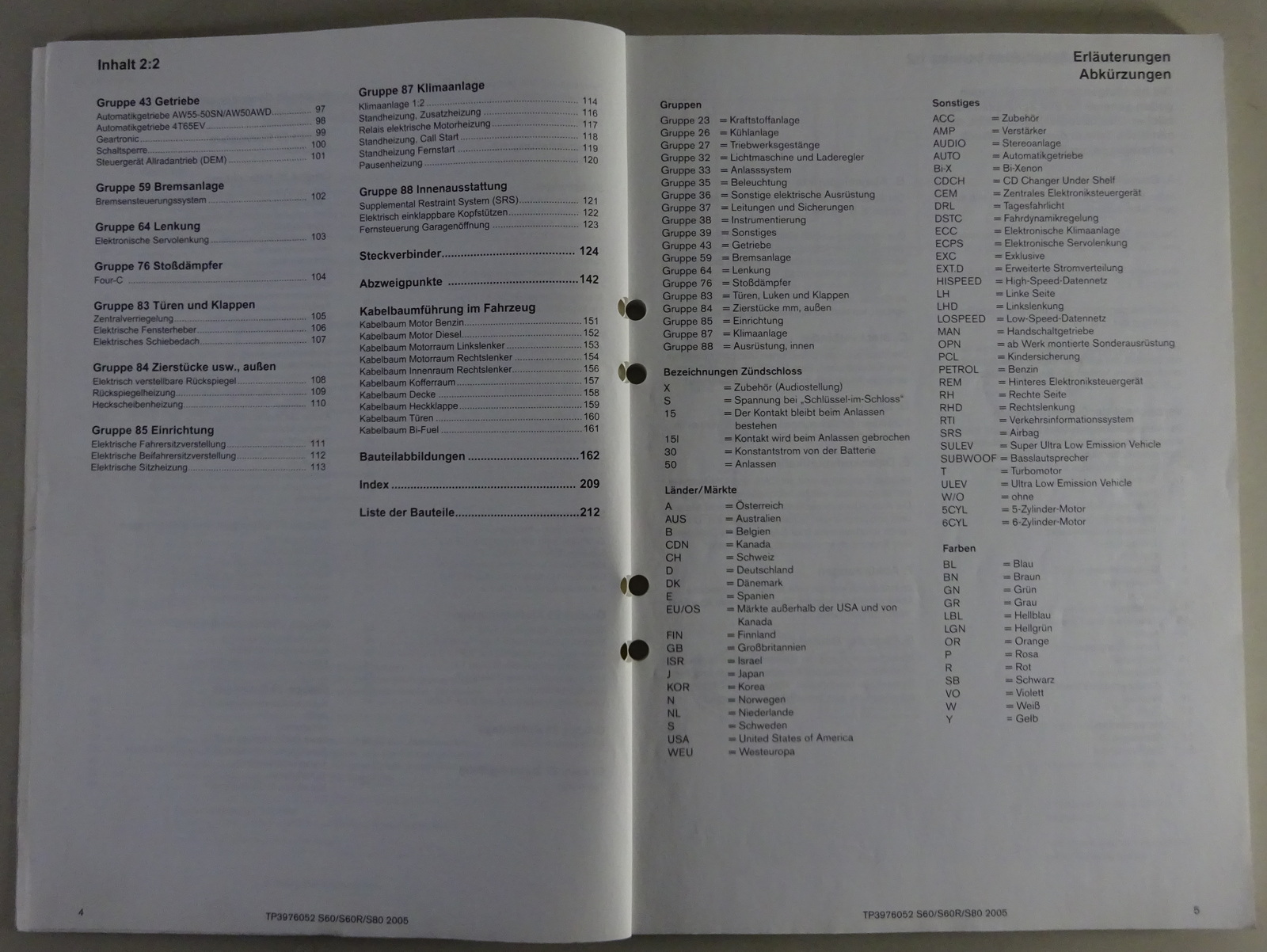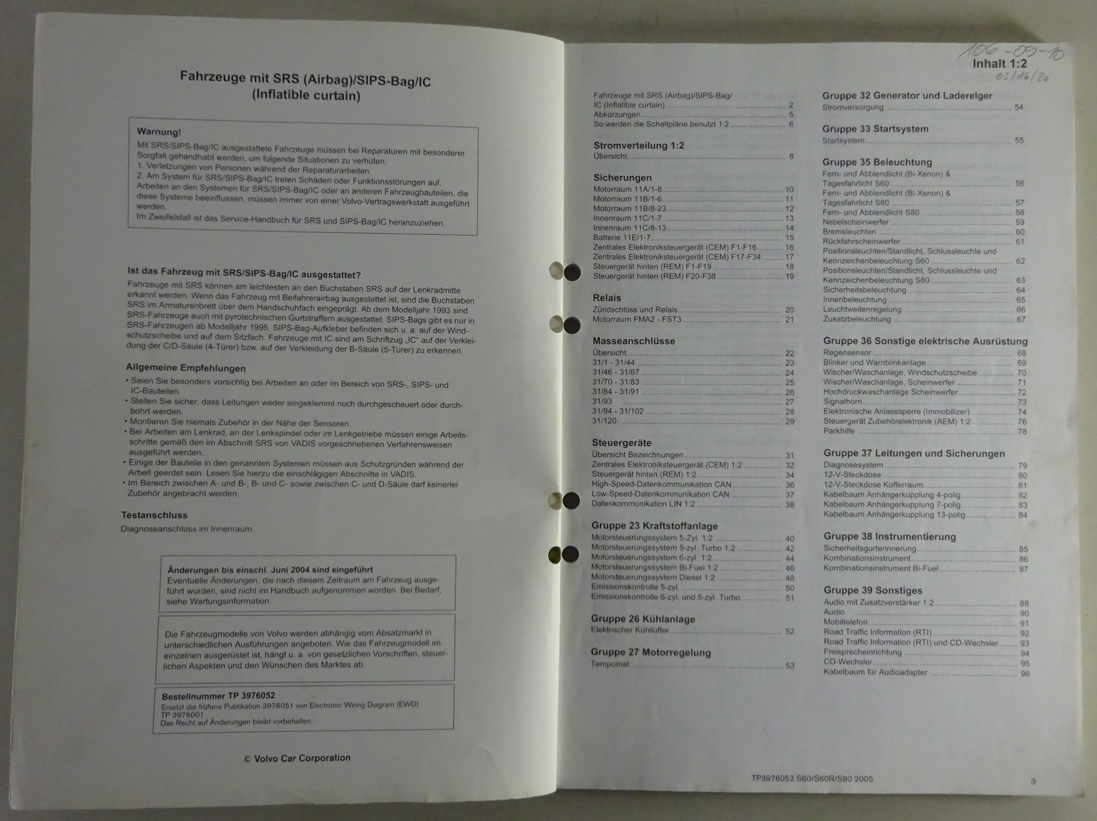 Werkstatthandbuch / Elektrische Schaltpläne Volvo S60 / S80 Bj. 2005 Stand 08/04