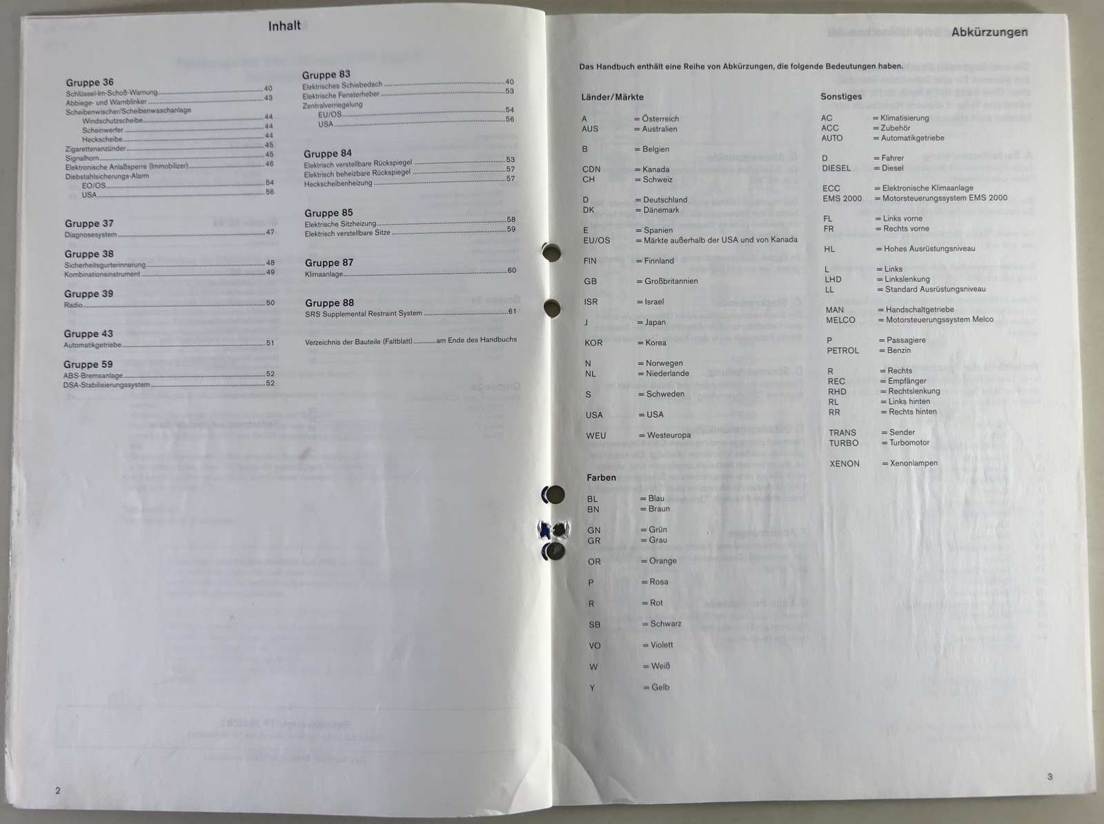Inhalt: Elektrische Schaltpläne, Kabelbäume, Lagepläne, Steckverbindungen, Relais, Sicherungen
