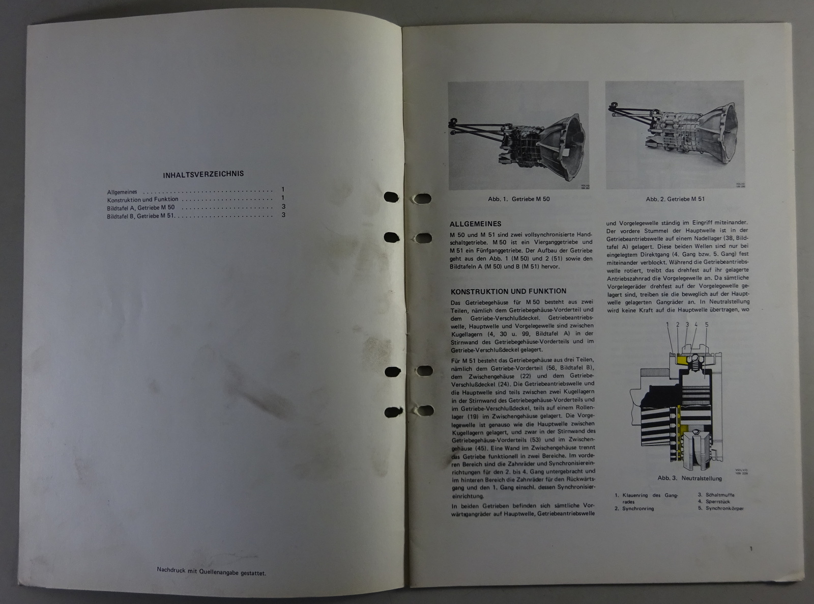 Werkstatthandbuch Funktion Volvo 264 Getriebe M50 / M51 Stand 02/1975