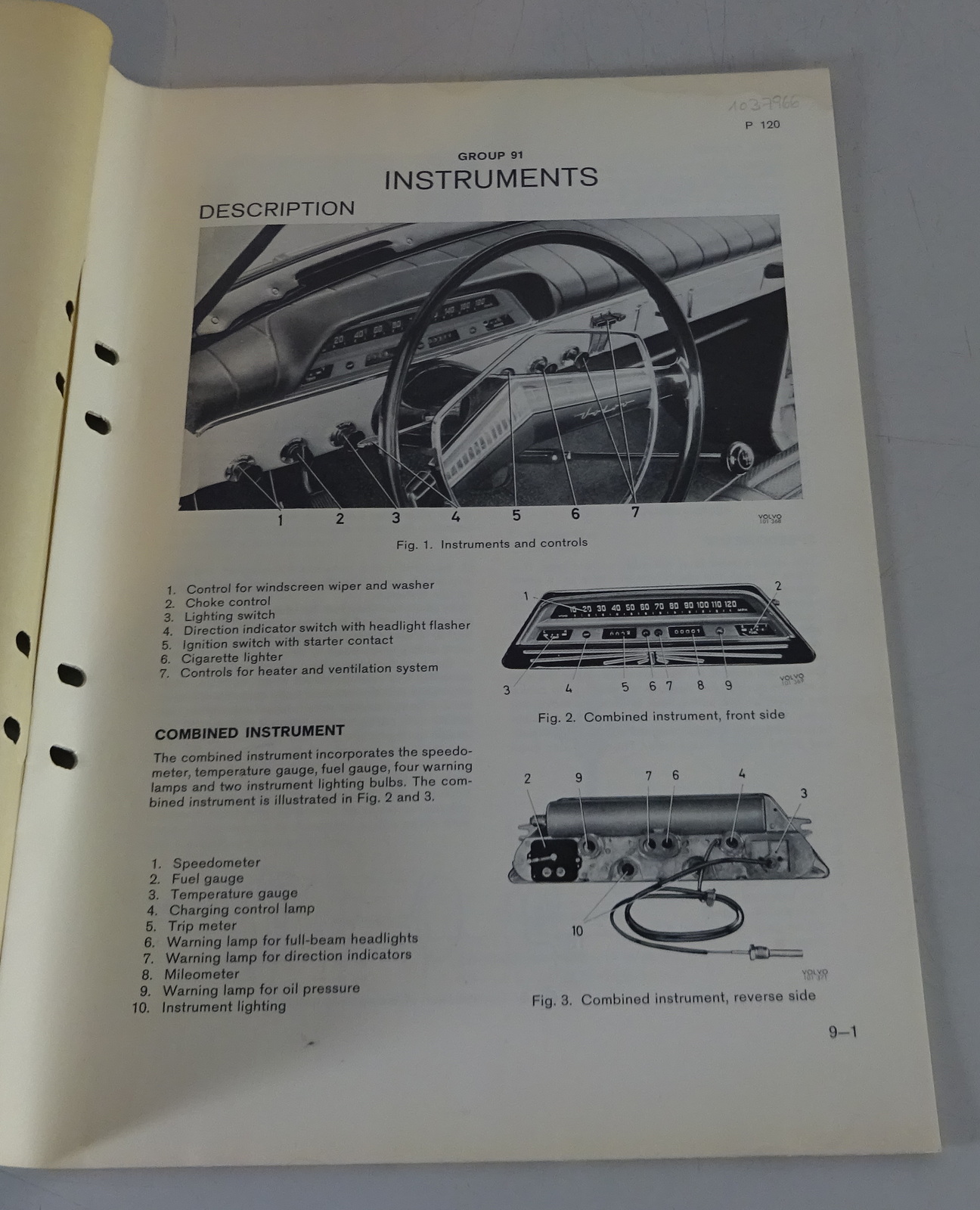 Workshop Manual / Service Manual Volvo Amazon P120 Instruments & Heater 04/1966