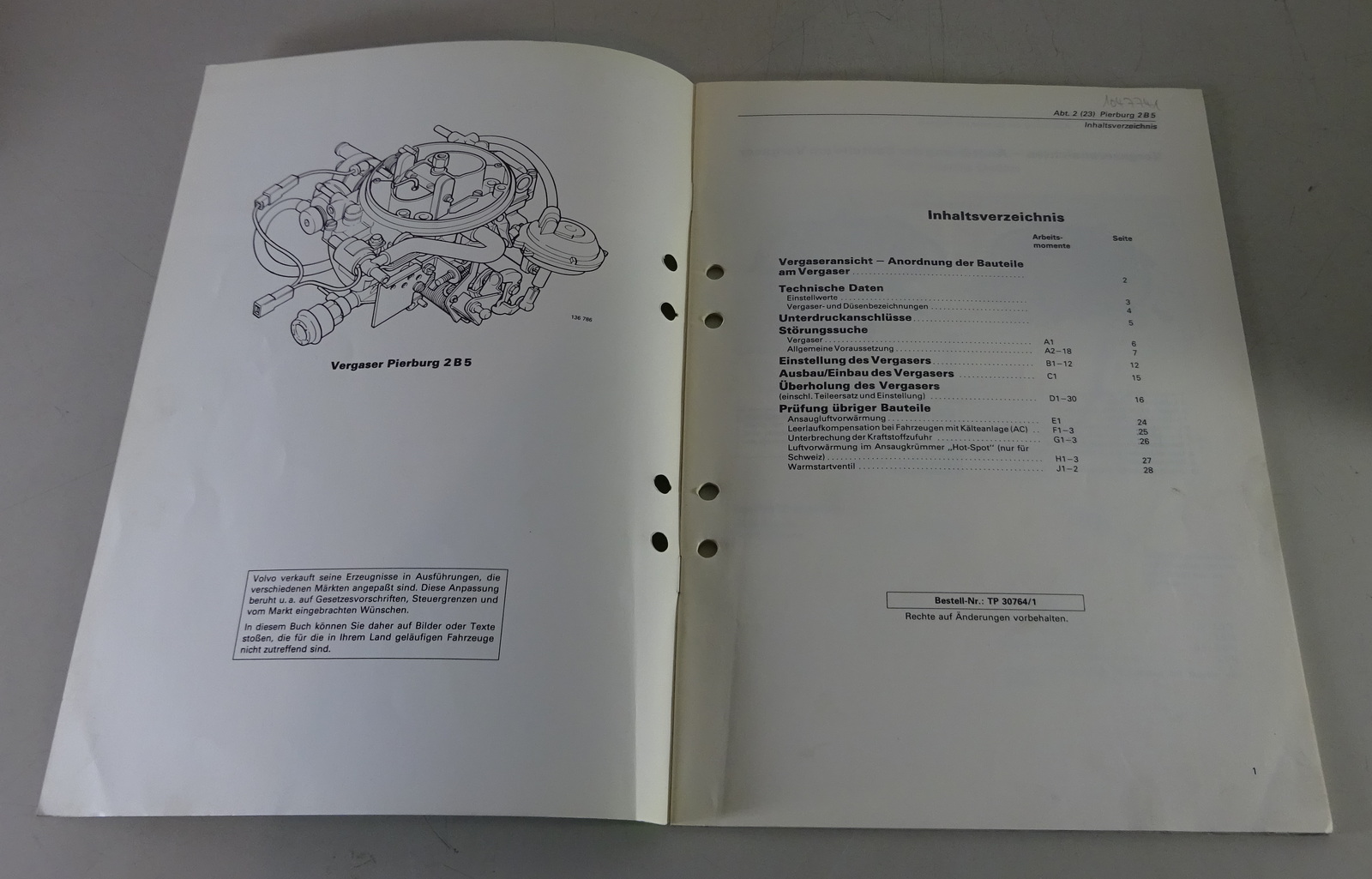 Werkstatthandbuch Volvo 740 Vergaser Pierburg 2B5 in Motor B 230 K ab 1985