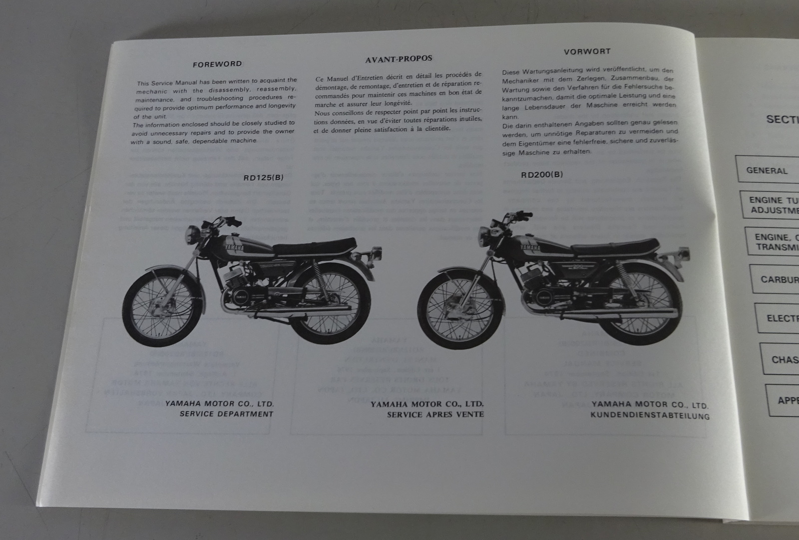 Werkstatthandbuch Yamaha RD 125 B, C, DX / RX 125 / RD 200 B, C, DX von 09/1974