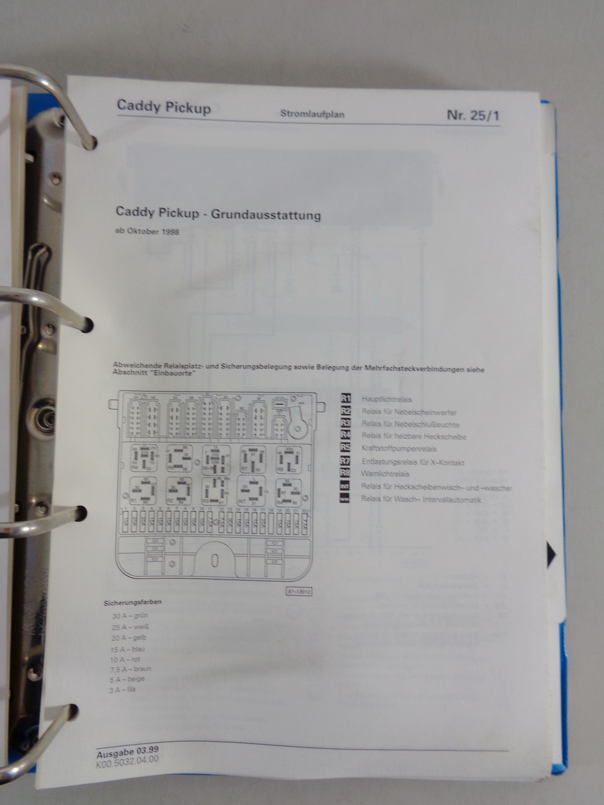 Werkstatthandbuch Elektrik / Schaltpläne VW Caddy Pickup 9U ab Stand 07/1996