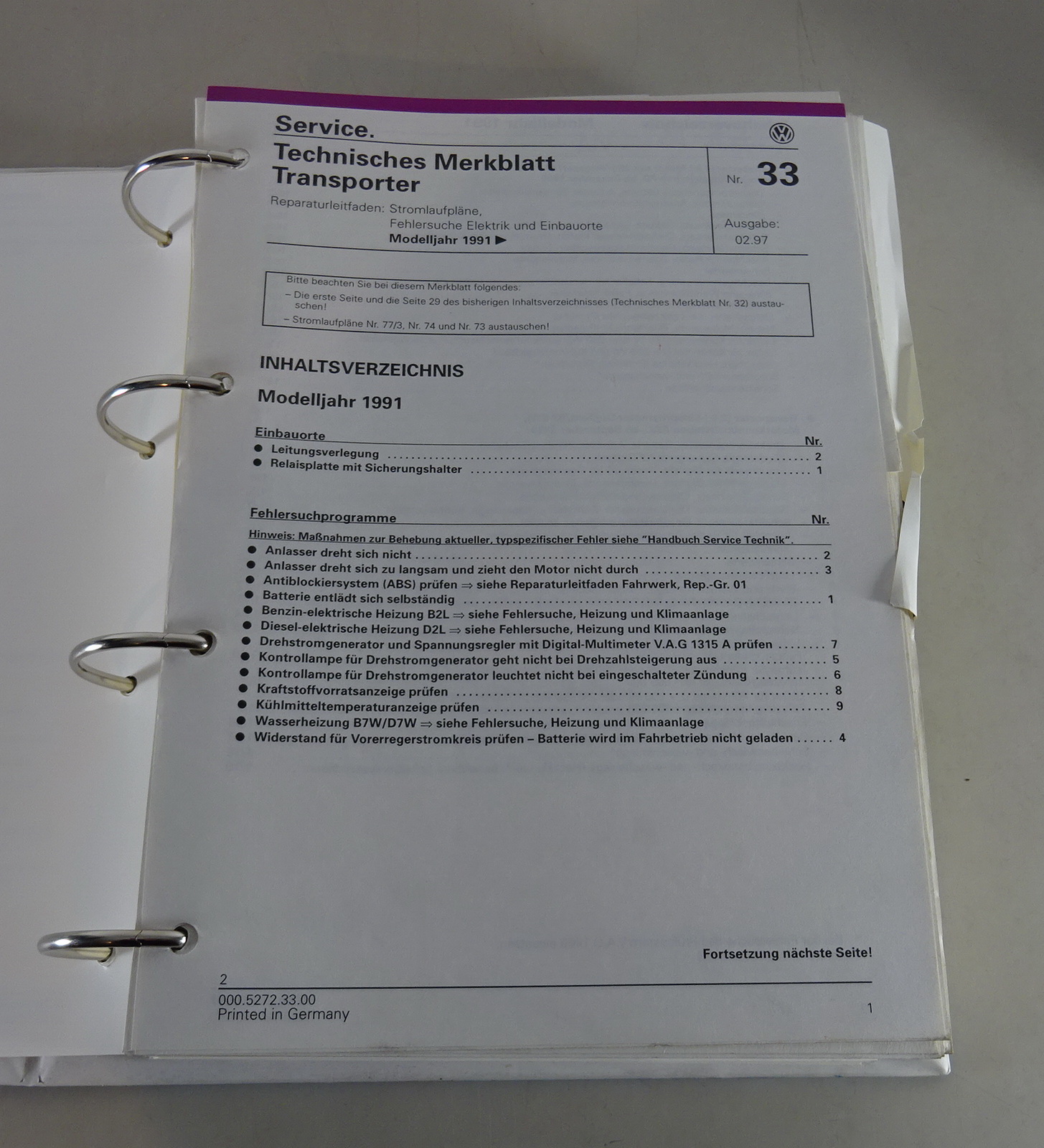 Produktinformationen "Werkstatthandbuch Elektrik / Schaltpläne VW Bus / Transporter T4 Bj. 91 von 1990"
