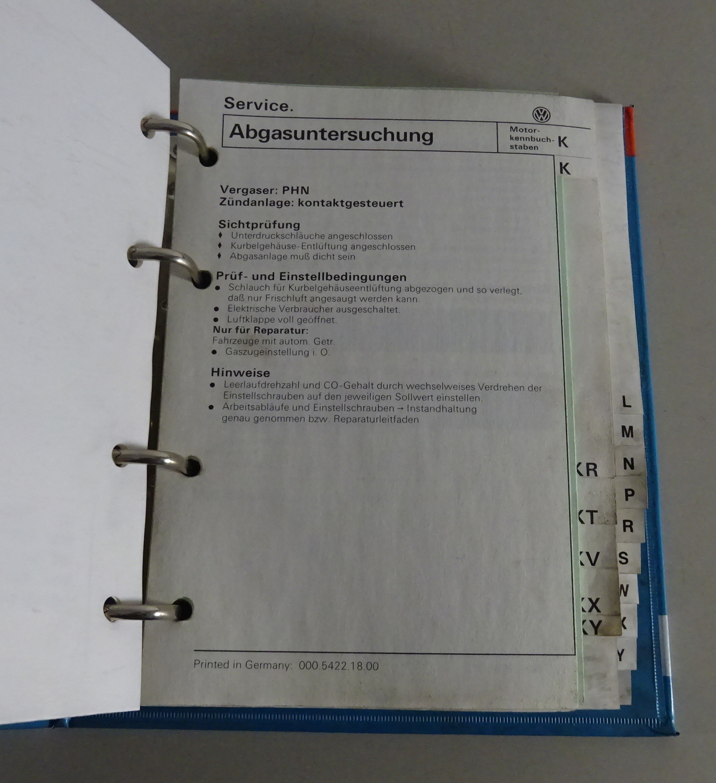 Werkstatthandbuch Datenblättter für Abgasuntersuchung\" original von VW