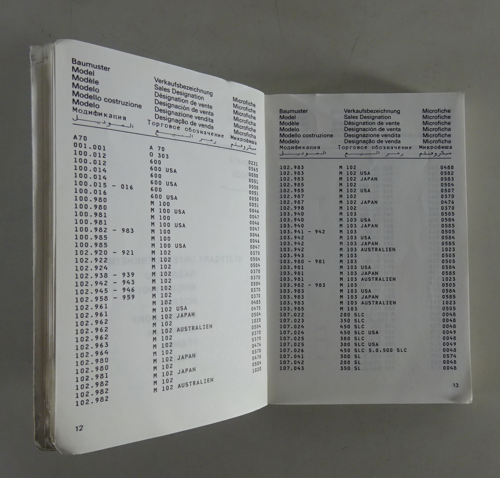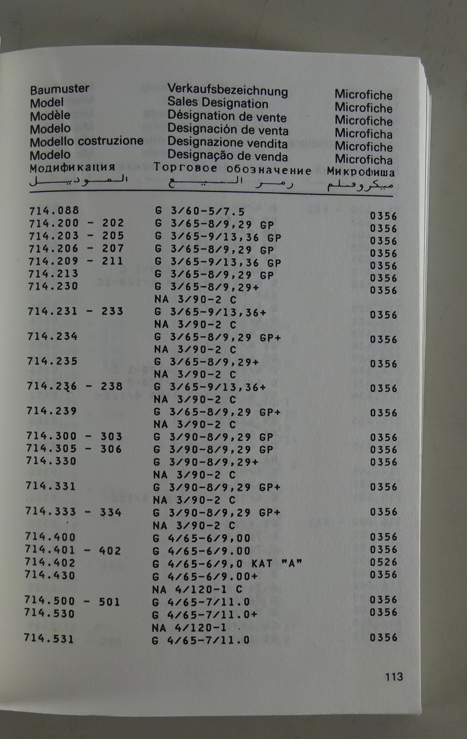 Baumusterverzeichnis / Model Index original Mercedes-Benz