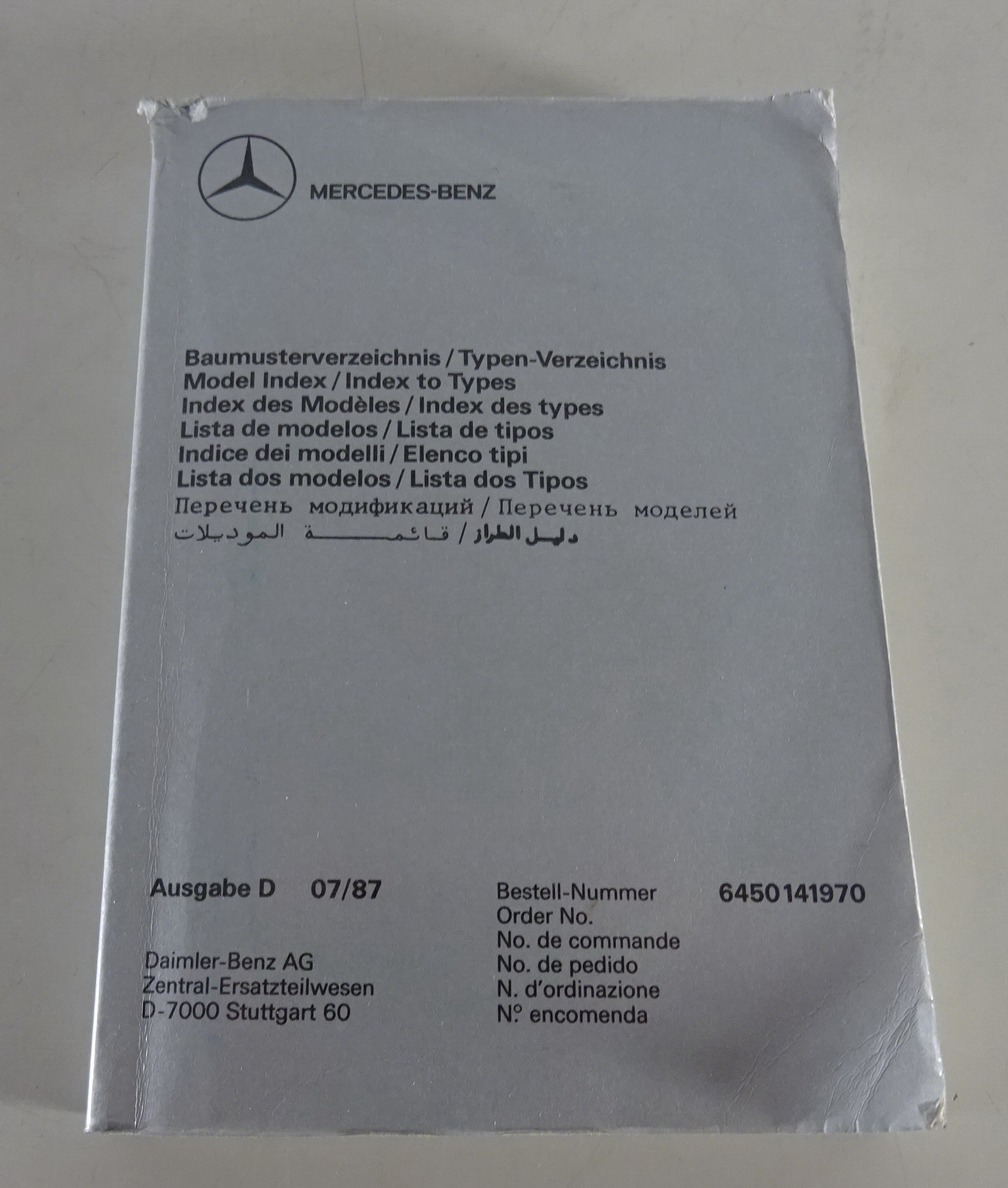 Baumusterverzeichnis Mercedes Benz PKW / LKW / BUS Stand 07/1987